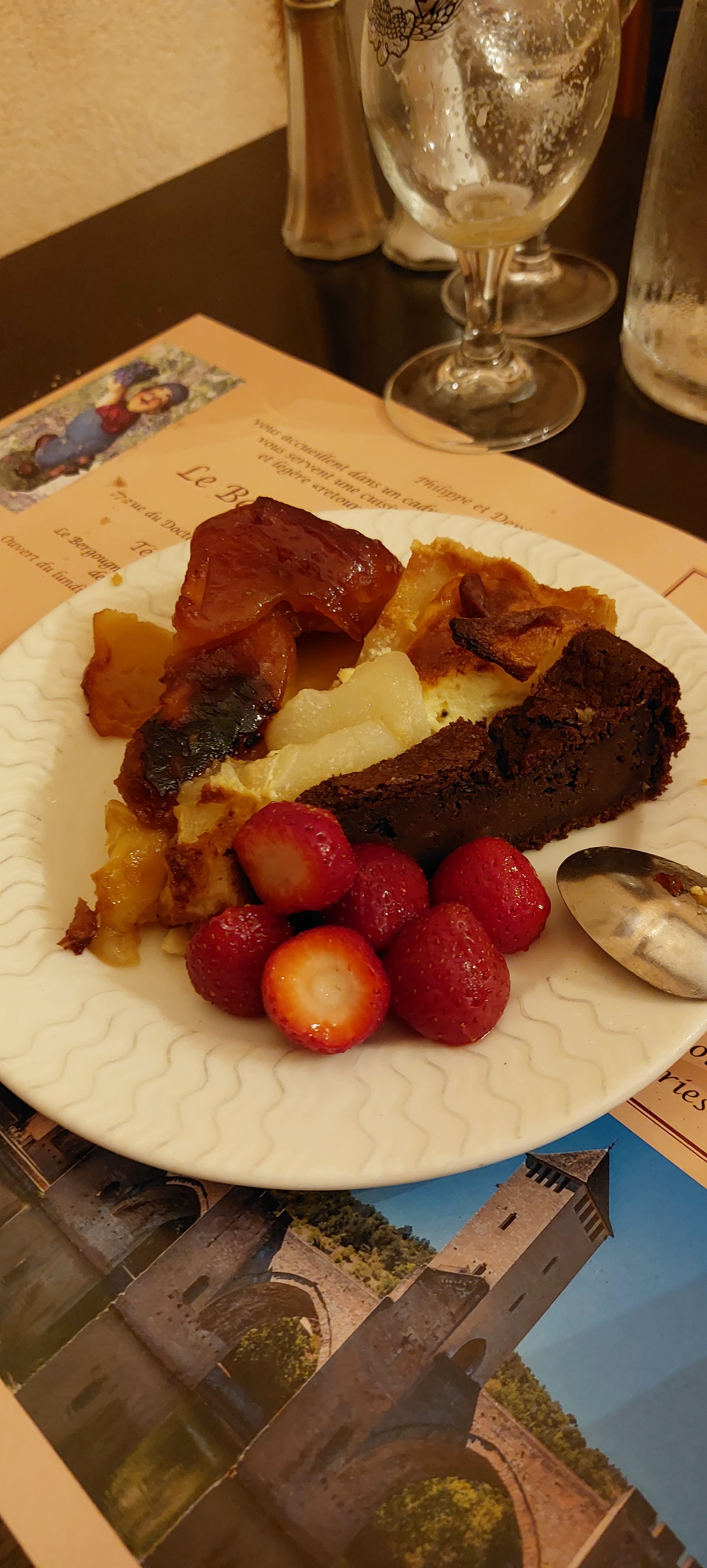 Très bien mangé, produits frais, maison, le restaurateur calcule au plus juste, fais ses courses matin et après midi. Si vous avez la chance de discuter avec lui, car il passe entre les tables, questionnez le ...Les gâteaux sont délicieux. Tres copieux,j'ai emmené ma ronde de dessert que j'ai dégusté le lendemain sur le chemin de compostelle. Sans hésitation, bon appetit!