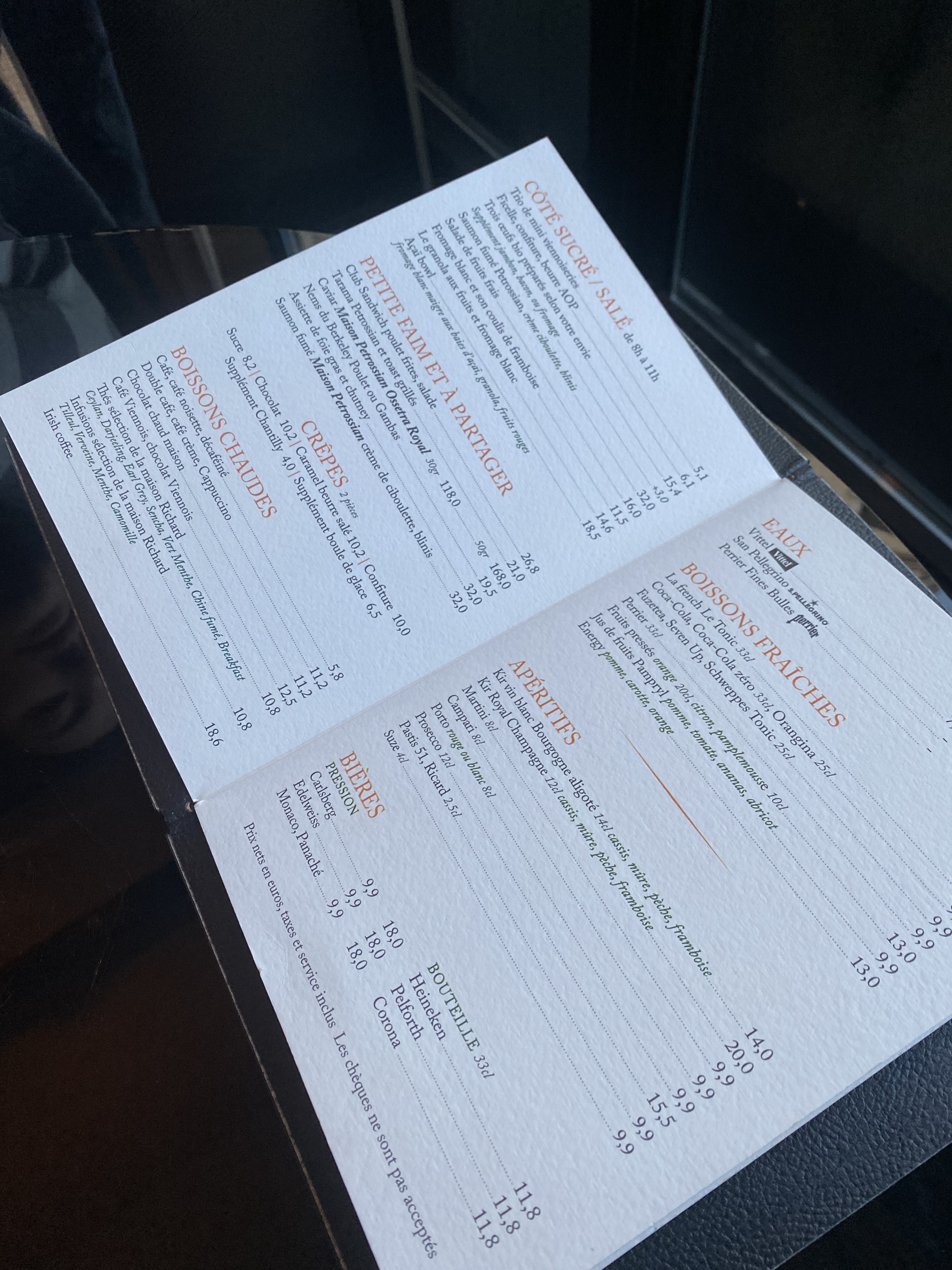Le cafe est à 11€ ! Ca ne vaut pas la peine du tout. En plus service pas terrible - on nous a oublié sur la terrasse.
