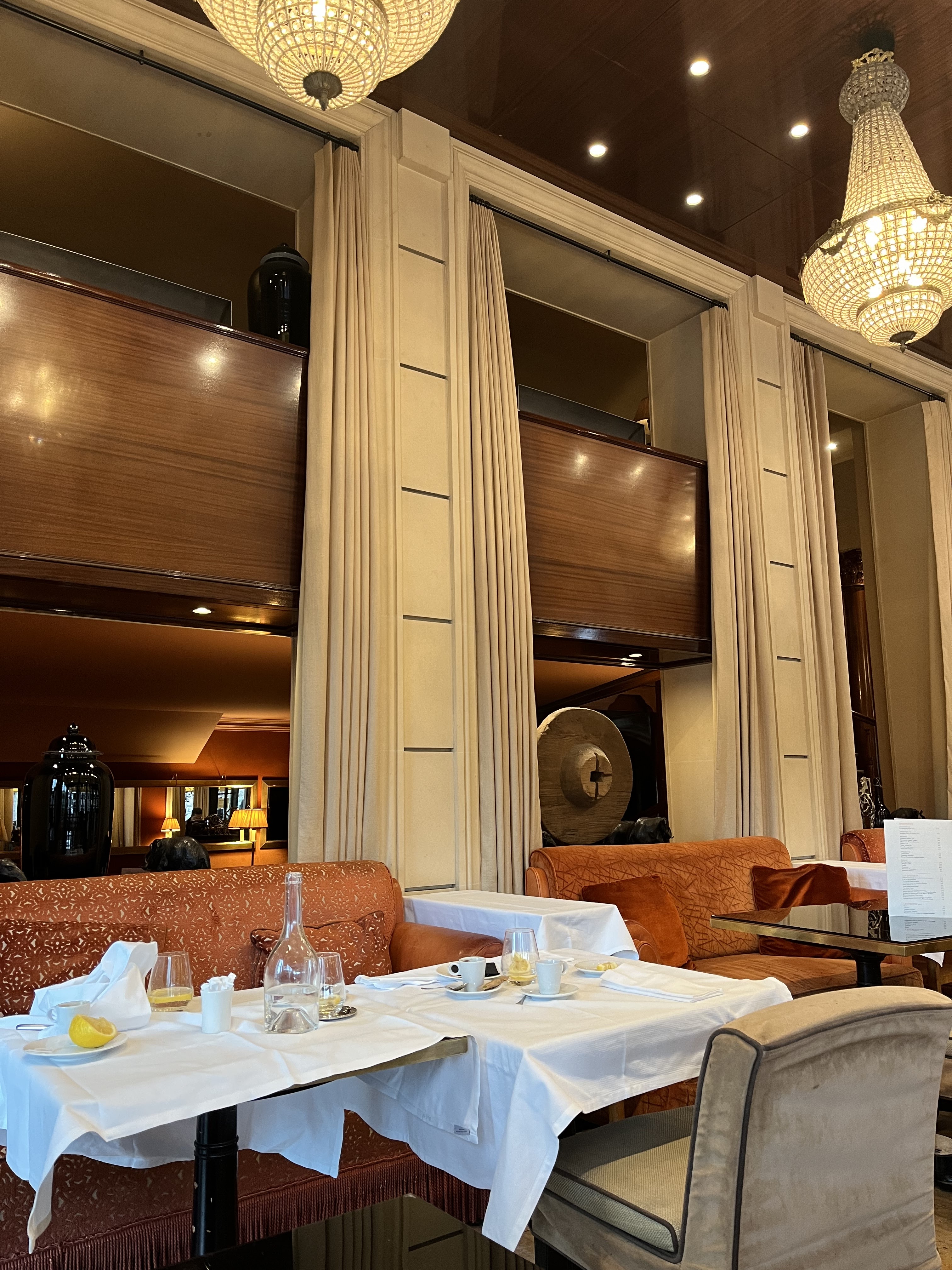 Superbe endroit à deux pas des Champs Élysées. Ambiance feutrée, cosy et intimiste loin du brouhaha de l’avenue voisine. Accueil à la hauteur du lieu ! Je recommande !