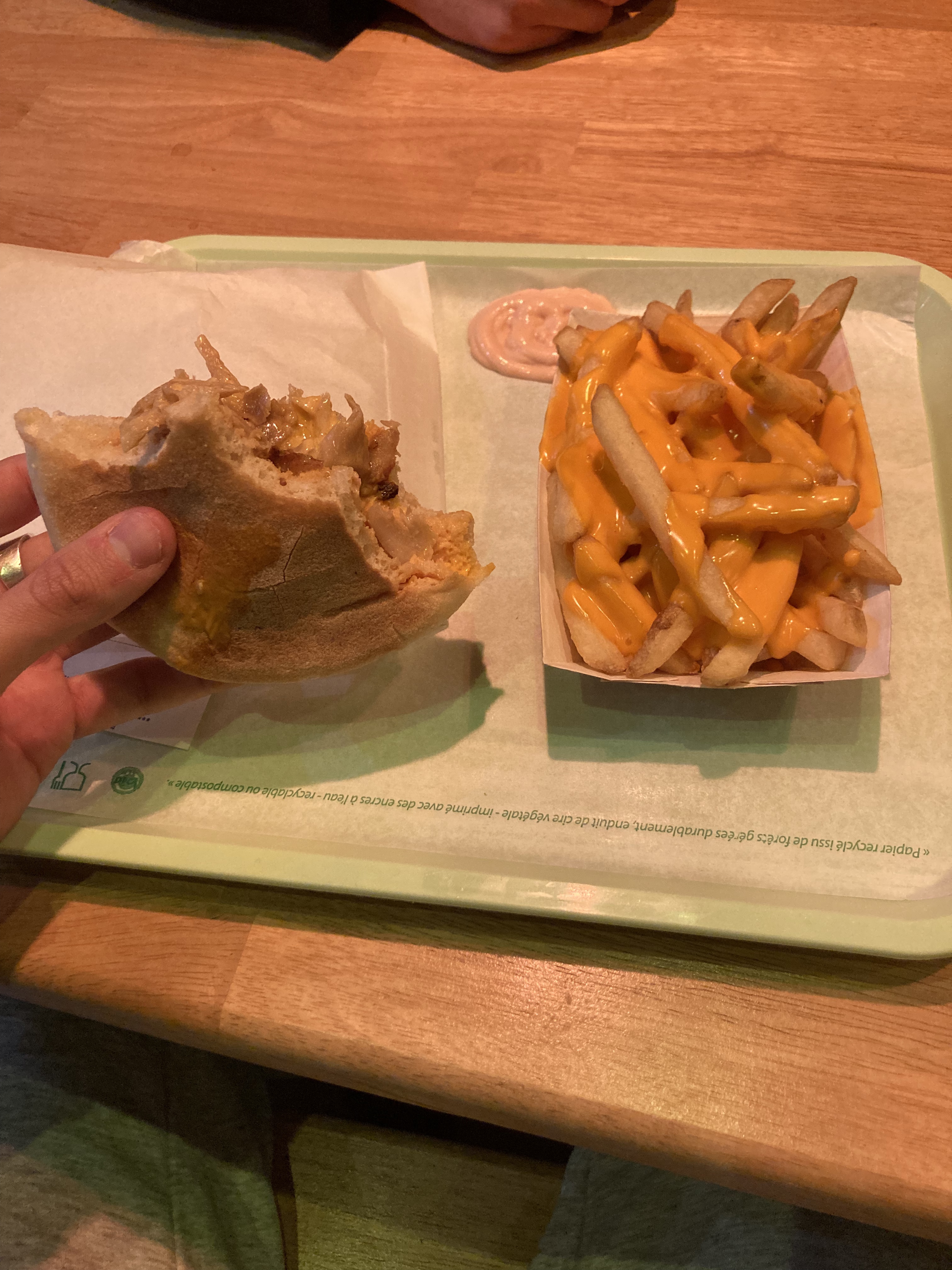 Vraiment pas à la hauteur du succès instagram. Frites peu savoureuses, cheddar liquide industriel. Le kebab vegetarien falafel, beaucoup trop de sauce. Pas hyper chaud. Assez cher. La borne de commande mets les nerfs a rude epreuve. Pas tres clean.