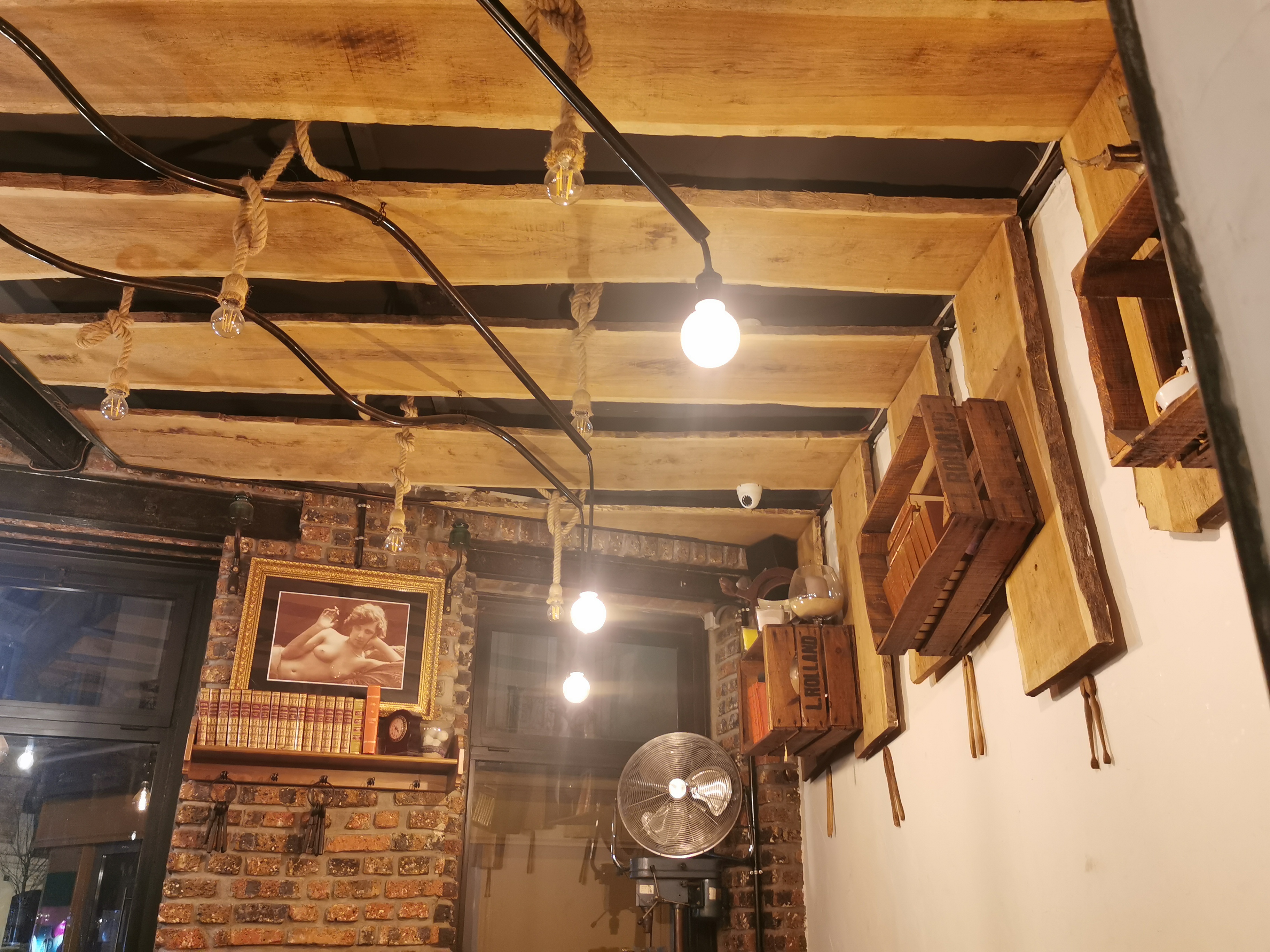 Le lieu est top pour prendre un verre tranquillement avec un fond de musique et une lumière peu agressive. Décoration atypique et rustique. Des frites au top du top faites maison. Elles étaient si bonnes. Pour le service, 4 étoiles car quelques petits loupés. On a cherché en vain le serveur et on a dû nous rendre jusqu’à la caisse pour recommander une nouvelle assiette de frites. En nous la déposant, ils n’ont pas pris le soin de reprendre la première assiette qui elle était vide.