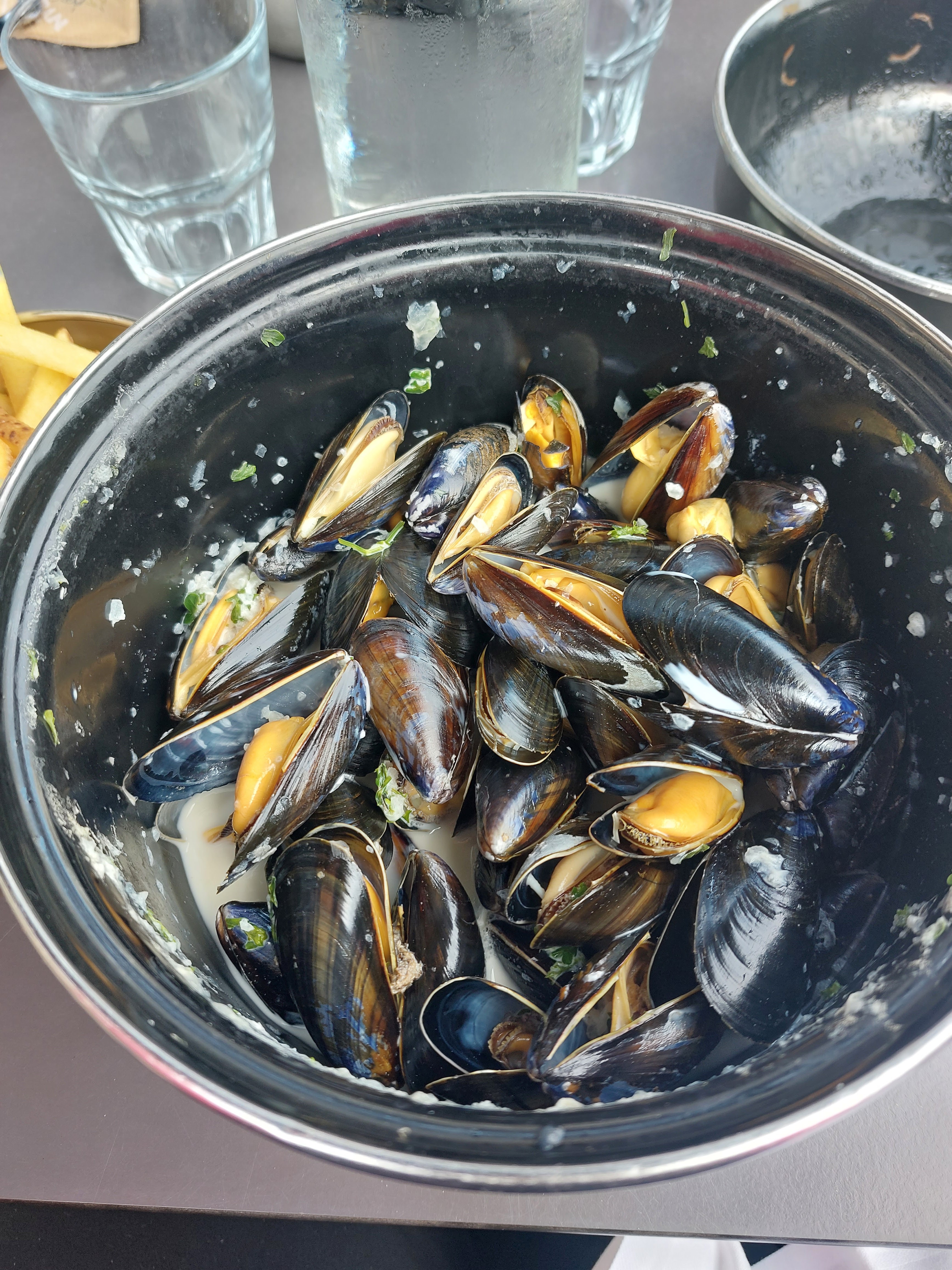 Excellent restaurant très bien placé Nous avons pris 3 moules (marinières, gorgonzola et crème) juste délicieuses. Elles étaient fraîches et bien copieuses. Le personnel est également très agréable