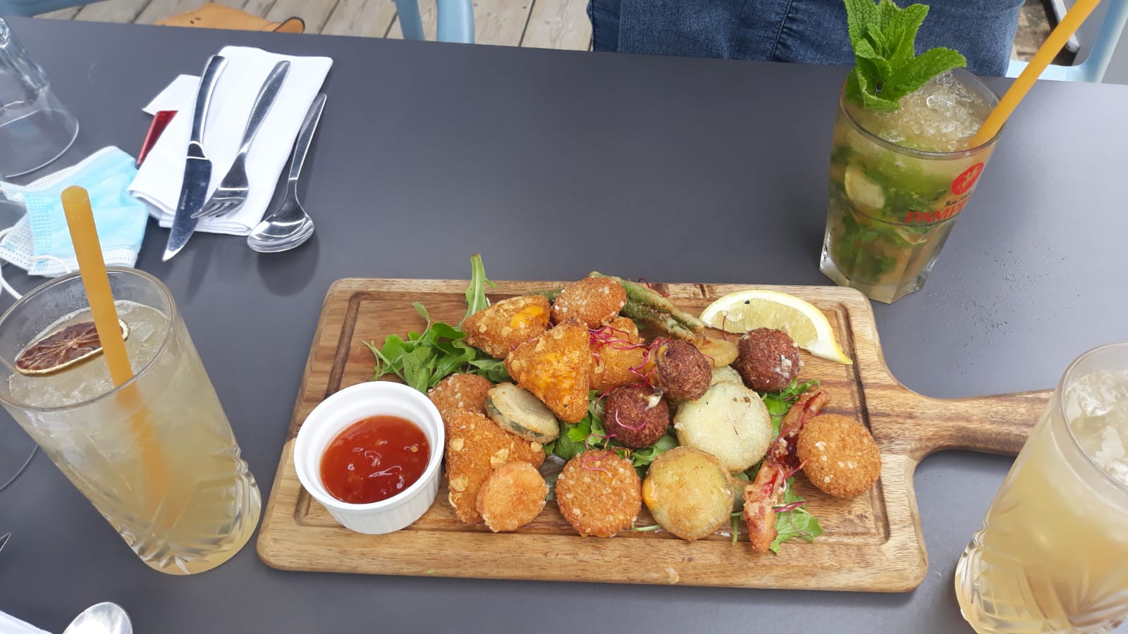 Bon cocktail et les moules frites curry coco très bonnes.