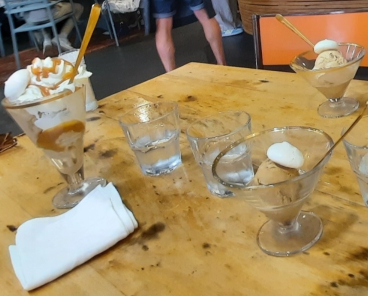Restaurant bien situé, a côté de l'océan. De l'autre côté de la route. La nourriture est bonne mais pas énorme, ça nourrit pas son homme si ce dernier mange bien (sans être une pelleteuse non plus) Quantités petites donc mais bonne qualité. Le service est très bon, très sympathique. Large choix de glace (72 il me semble) Tarifs correct pour un bord de mer (donc assez cher)