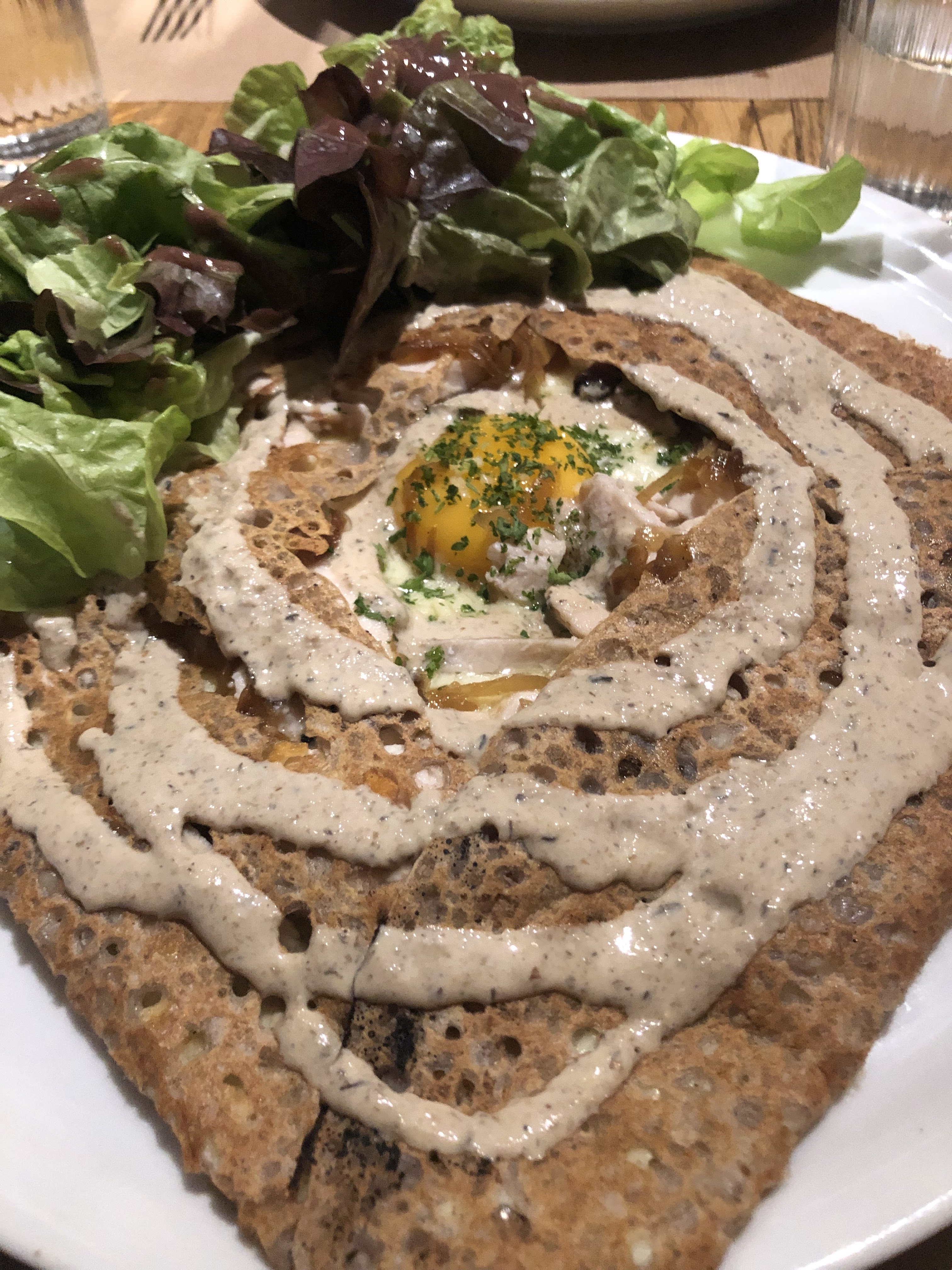 Crêpes et Salades délicieuses et copieuses. Accueil souriant et très agréable. Une bonne adresse à un rapport qualité prix imbattable. Seule remarque c'est que la salle est très petite et les tables très serrées. Après ça crée du lien avec les voisins de tables c'est convivial. Je recommande !