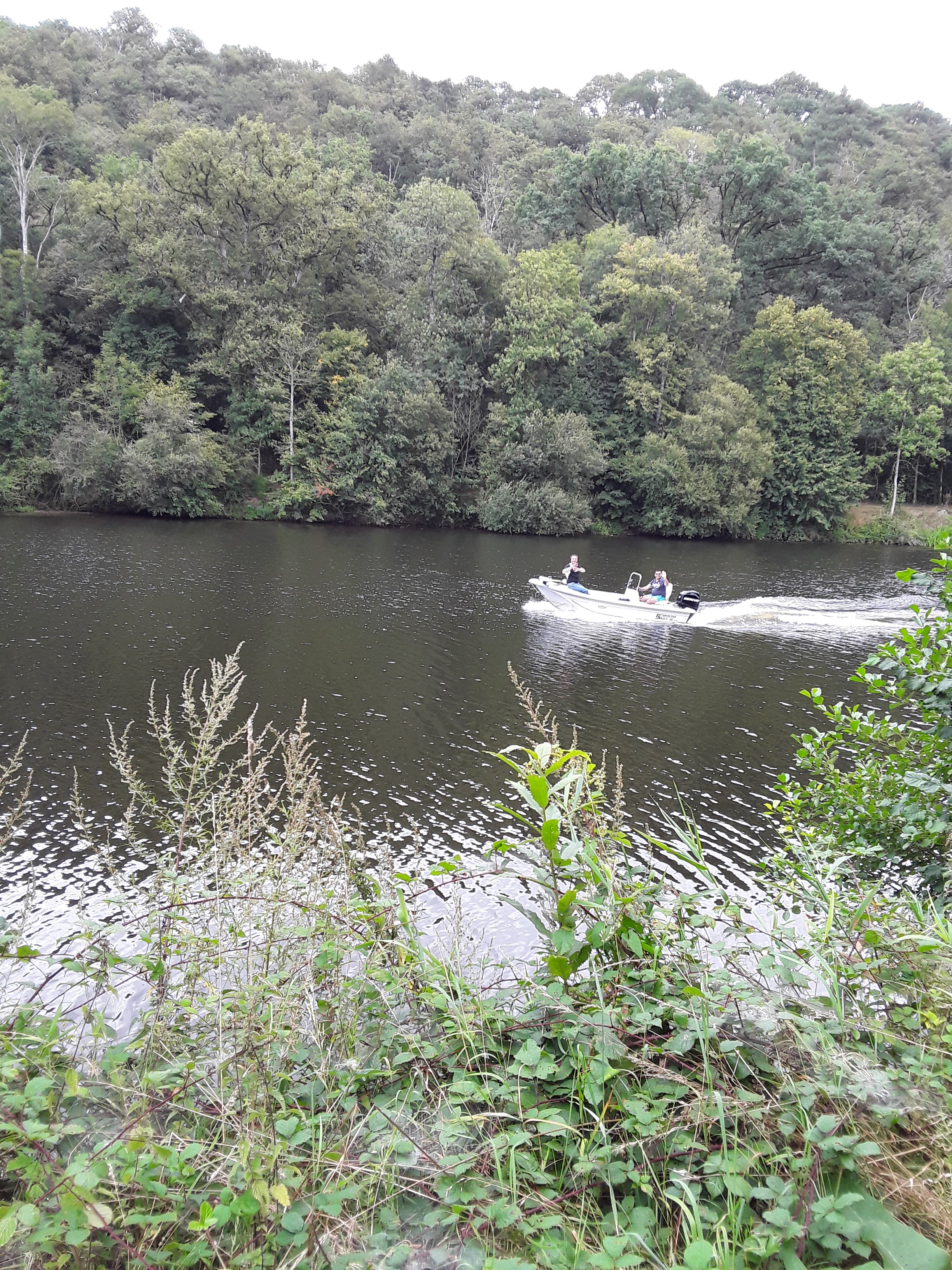 Repas agréable au bord de la Mayenne à l'écluse de la Benâtre avec 3 popotes. Le temps du déjeuner nous a permis d'être dehors. Par contre le café a été pris à l'interieur cause pluie. Même pas la possibilité de se promener le long du halage à cause de cette météo très très sombre !!!
