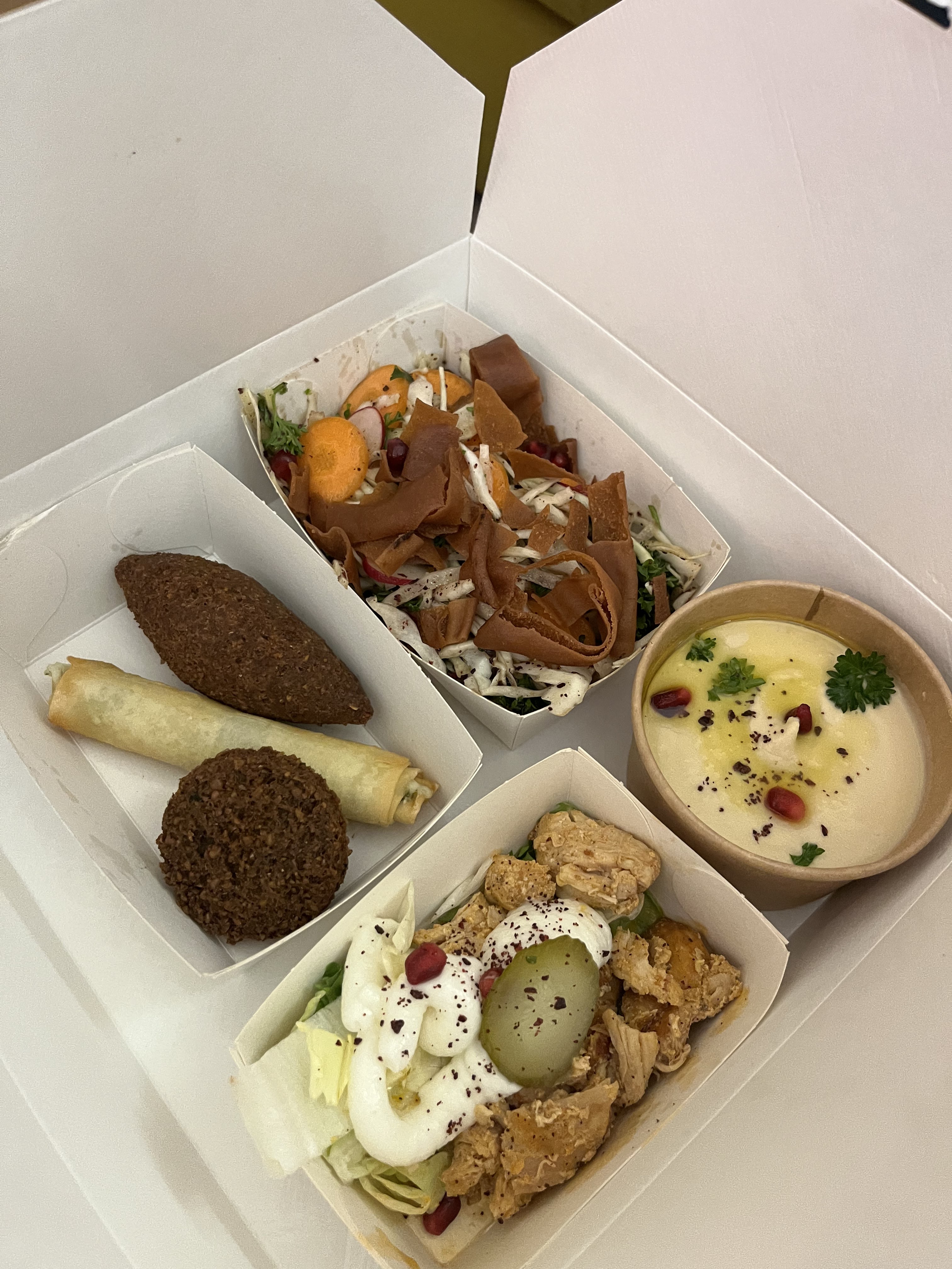 Superbe découverte : j'ai testé la mezze box et tout était succulent (kebbé, stick au fromage, poulet à la crème d'ail-une tuerie-, la salade...)!