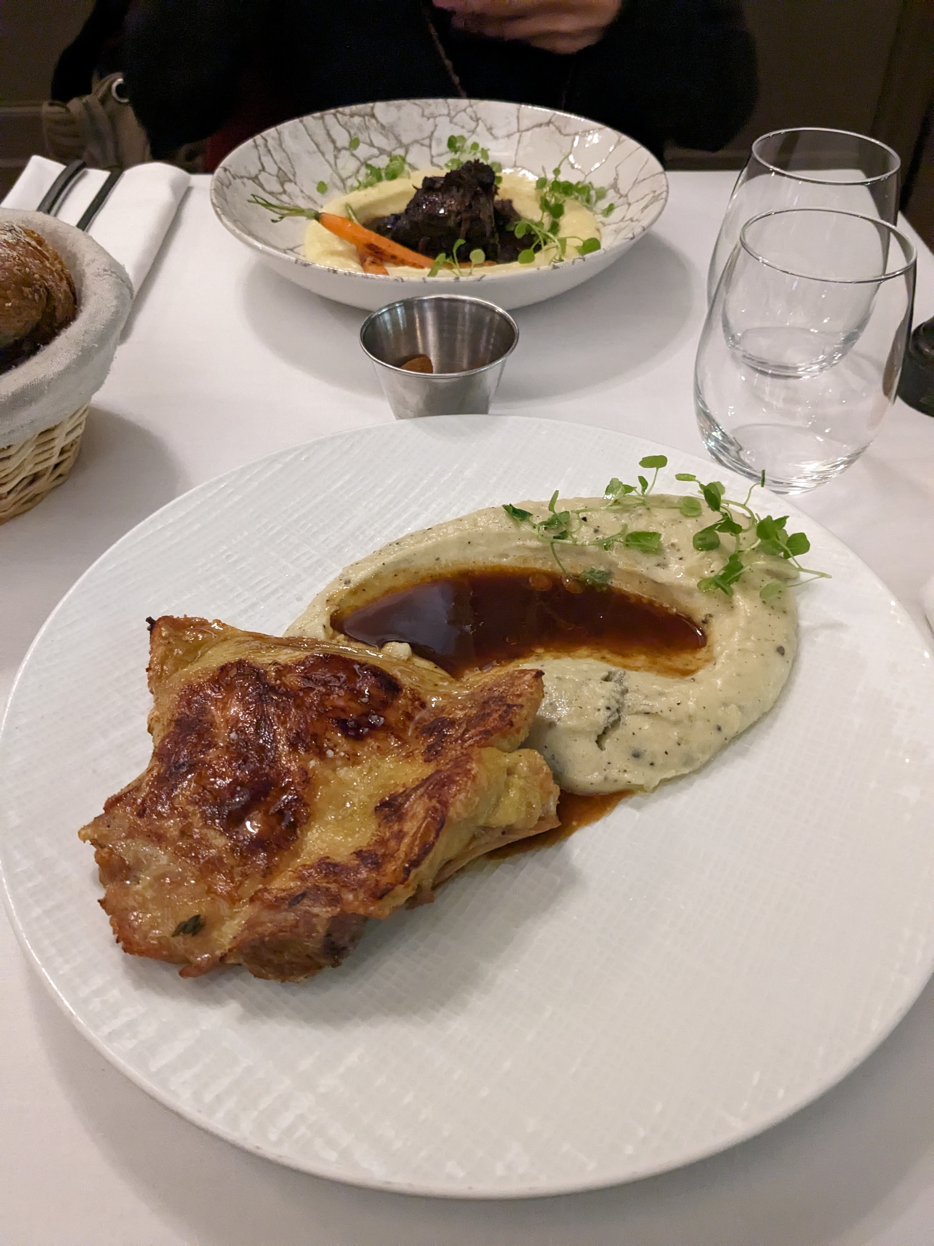 Exquis!! Un restaurant qui mérite sa renommée!! J’ai pris la pintade et la viande était juste parfaite! Fondante et tendre! Le dessert était tout aussi bon! Quant à l’accueil, les jeunes serveuses ont été très accueillantes et très conciliantes au regard de notre réservation par internet qui a eu un soucis. Je recommande vraiment ce restaurant!!