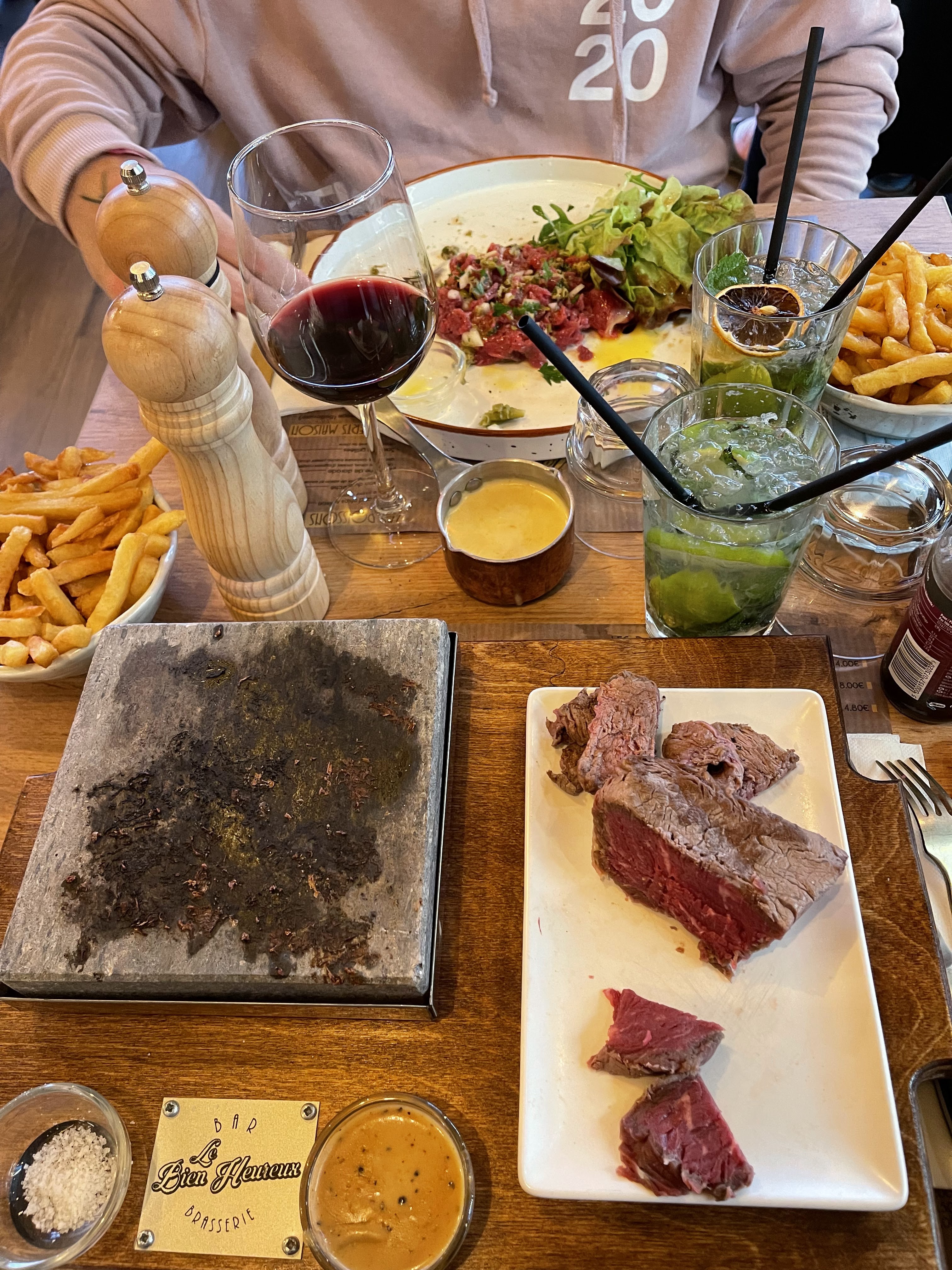 Super moment ! Le filet de bœuf cuisson sur Pierre est un incontournable, la viande est ultra tendre et savoureuse. Les cocktails sont très bien dosés. Pour le dessert, le pain perdu brioché est un délice 👍