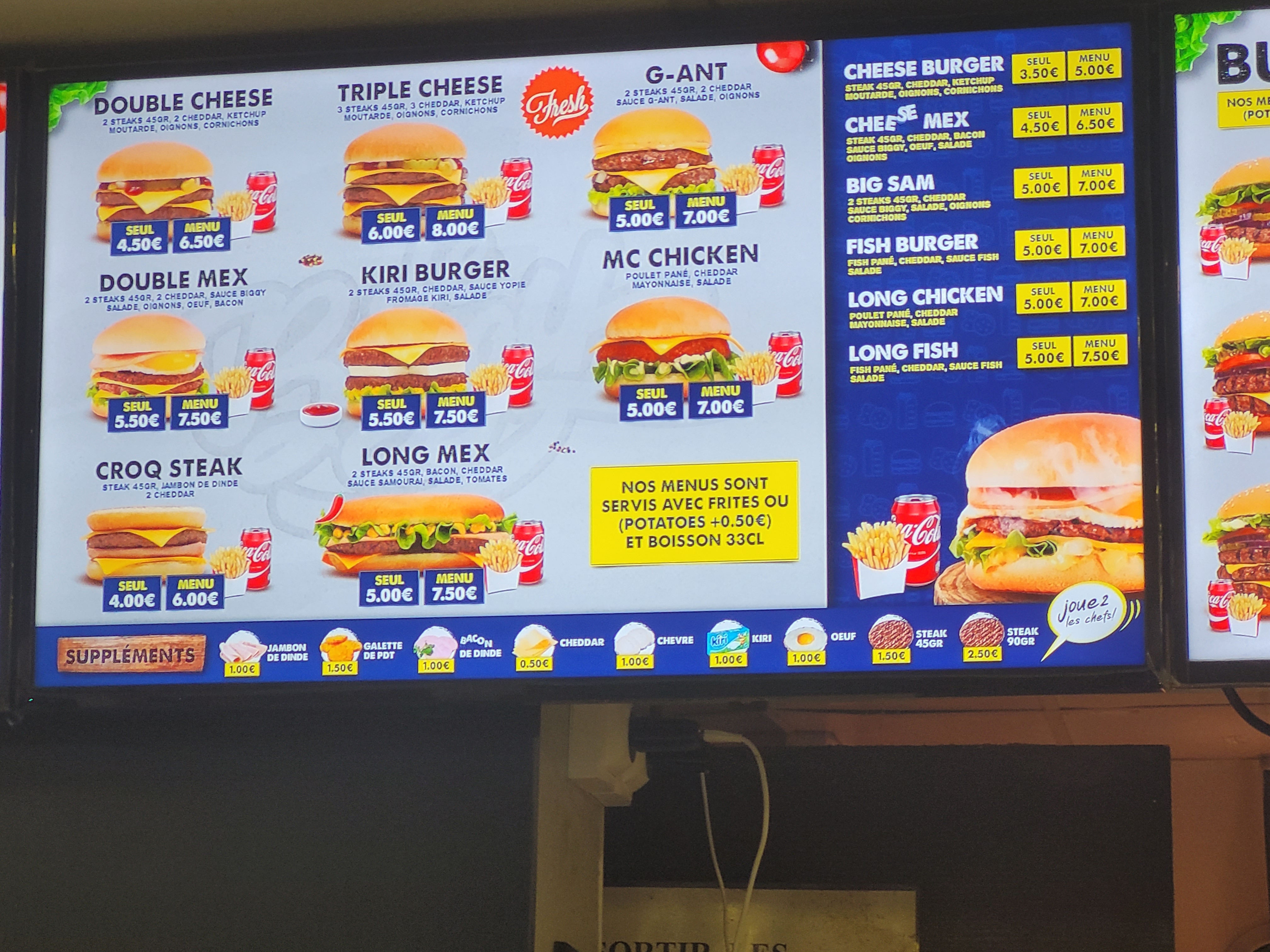 La meilleure imitation des sandwichs du Mac Do en version halal , les prix sont correct , les frites en quantité , le tarif correct , menu pour enfants disponible , place de parking a 1 mn à pied .