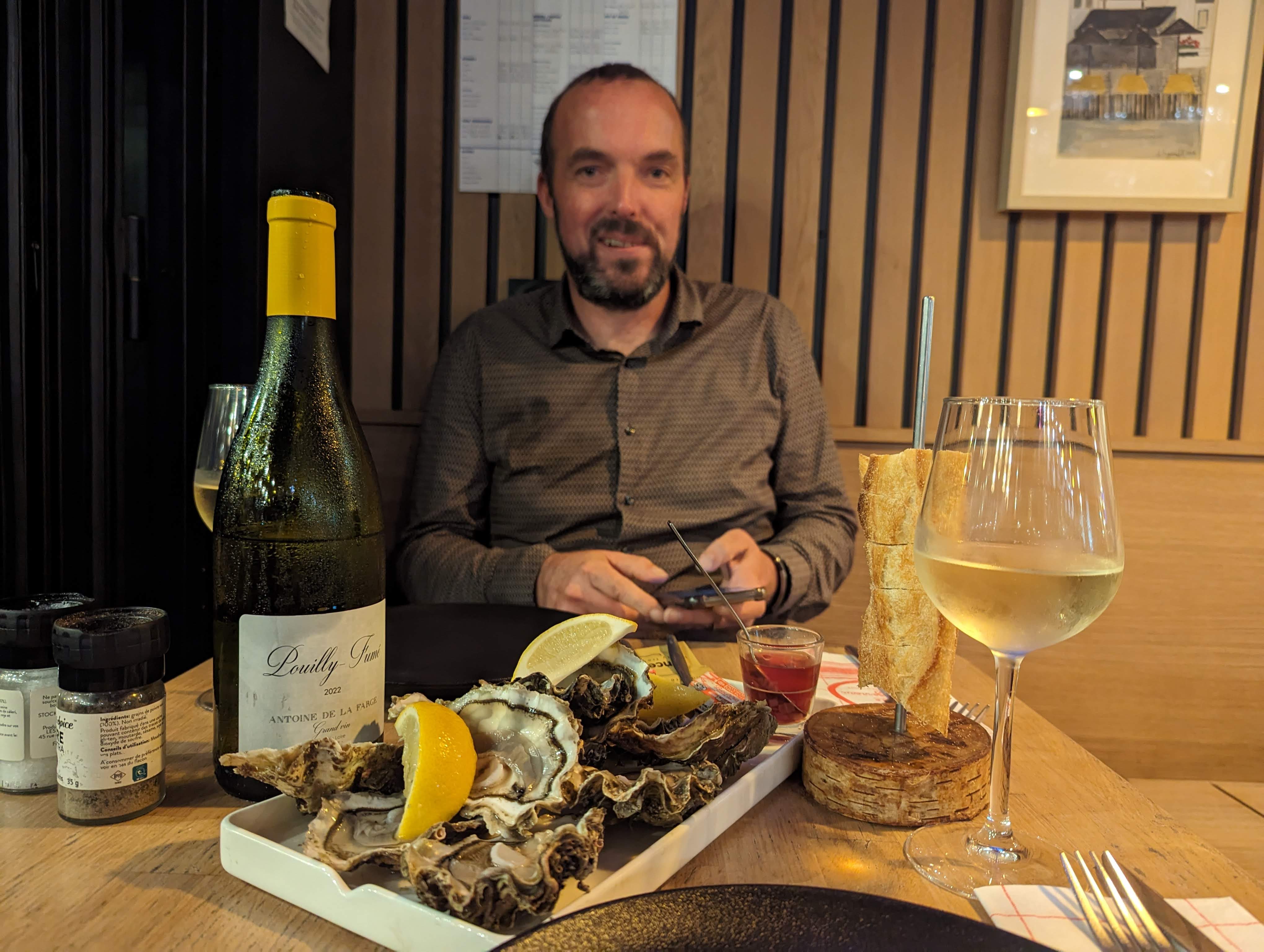 Tre belle rencontre avec le patron. Moules délicieuses… je recommande à 100%