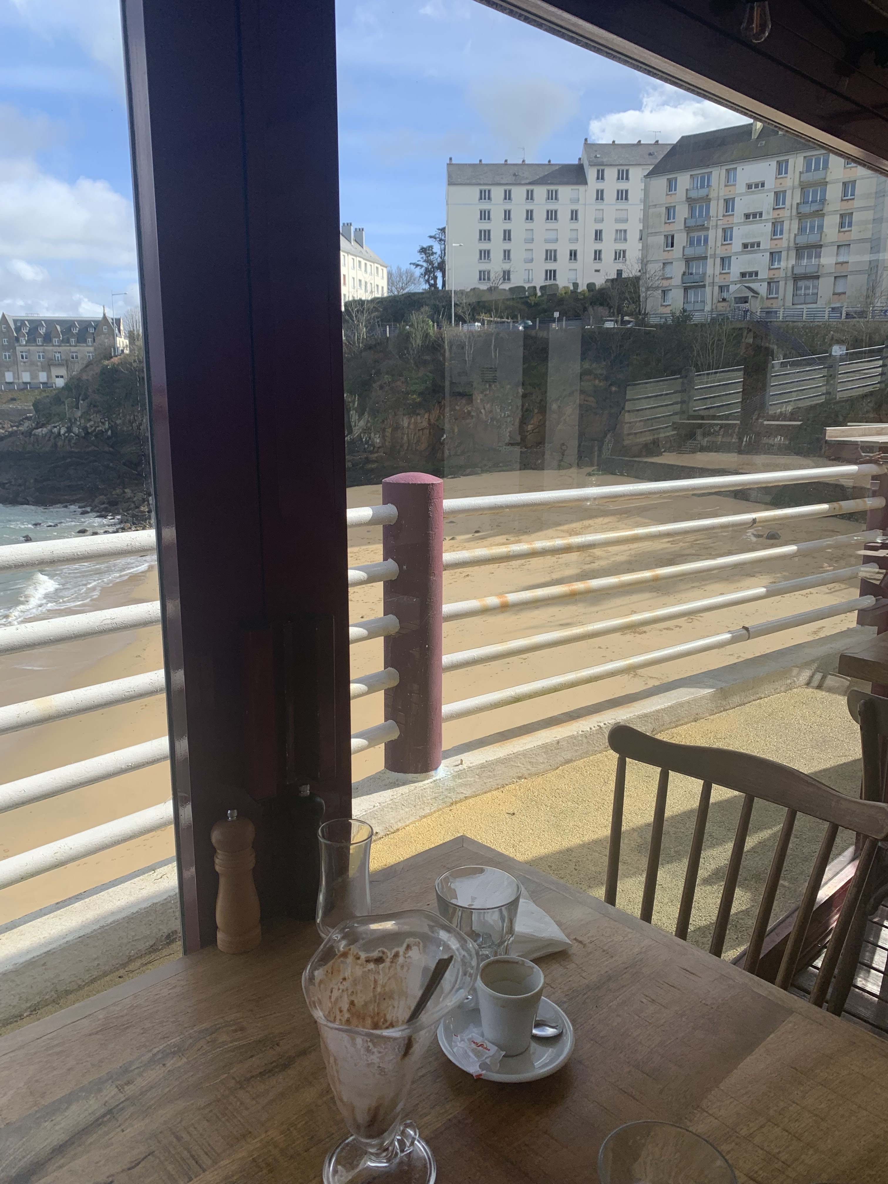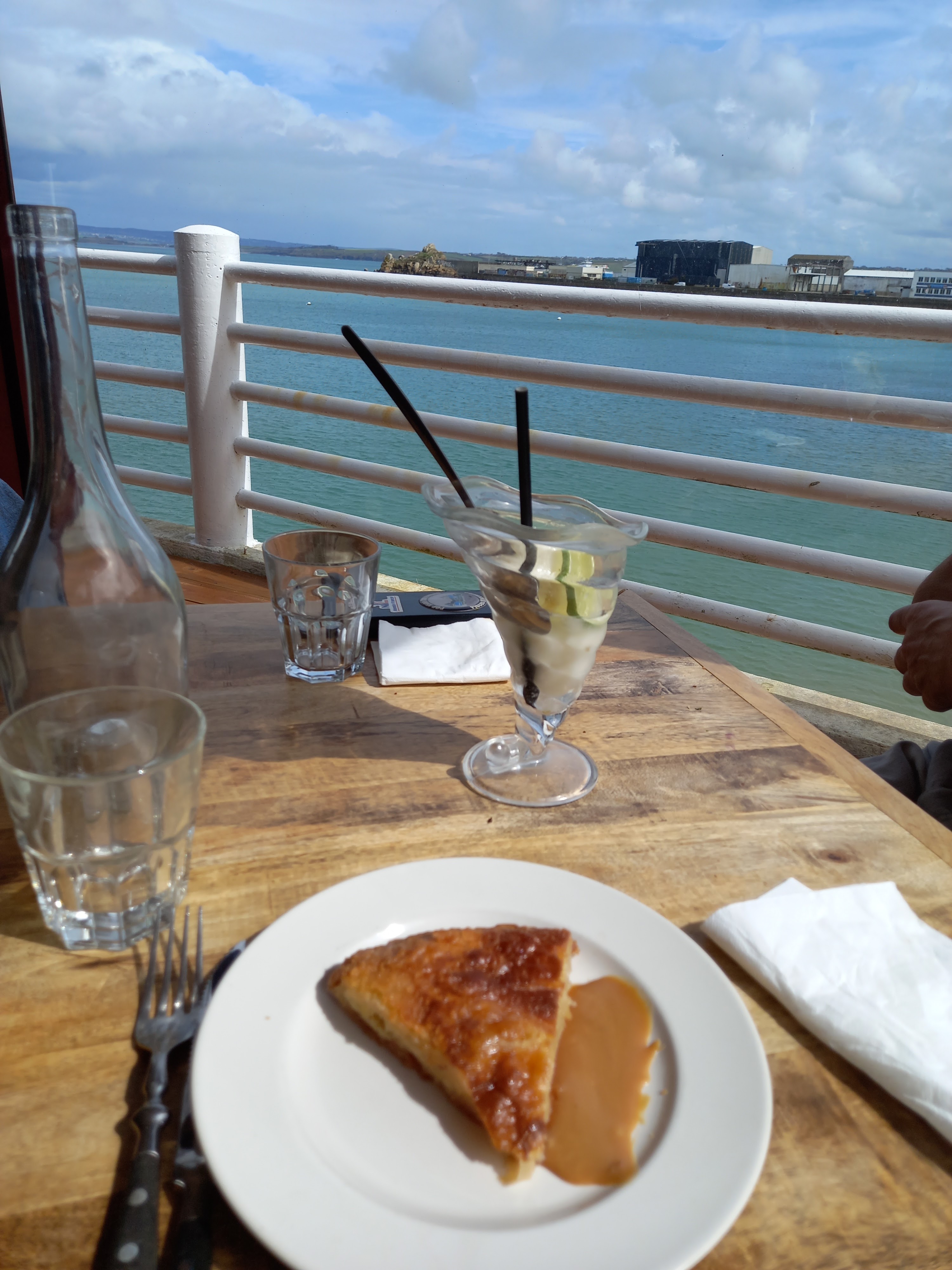 Arrêtés pour un café On s'est laissé tenter par une crème brûlée Un délice Face à la mer Un pur moment pendant note séjour en Bretagne