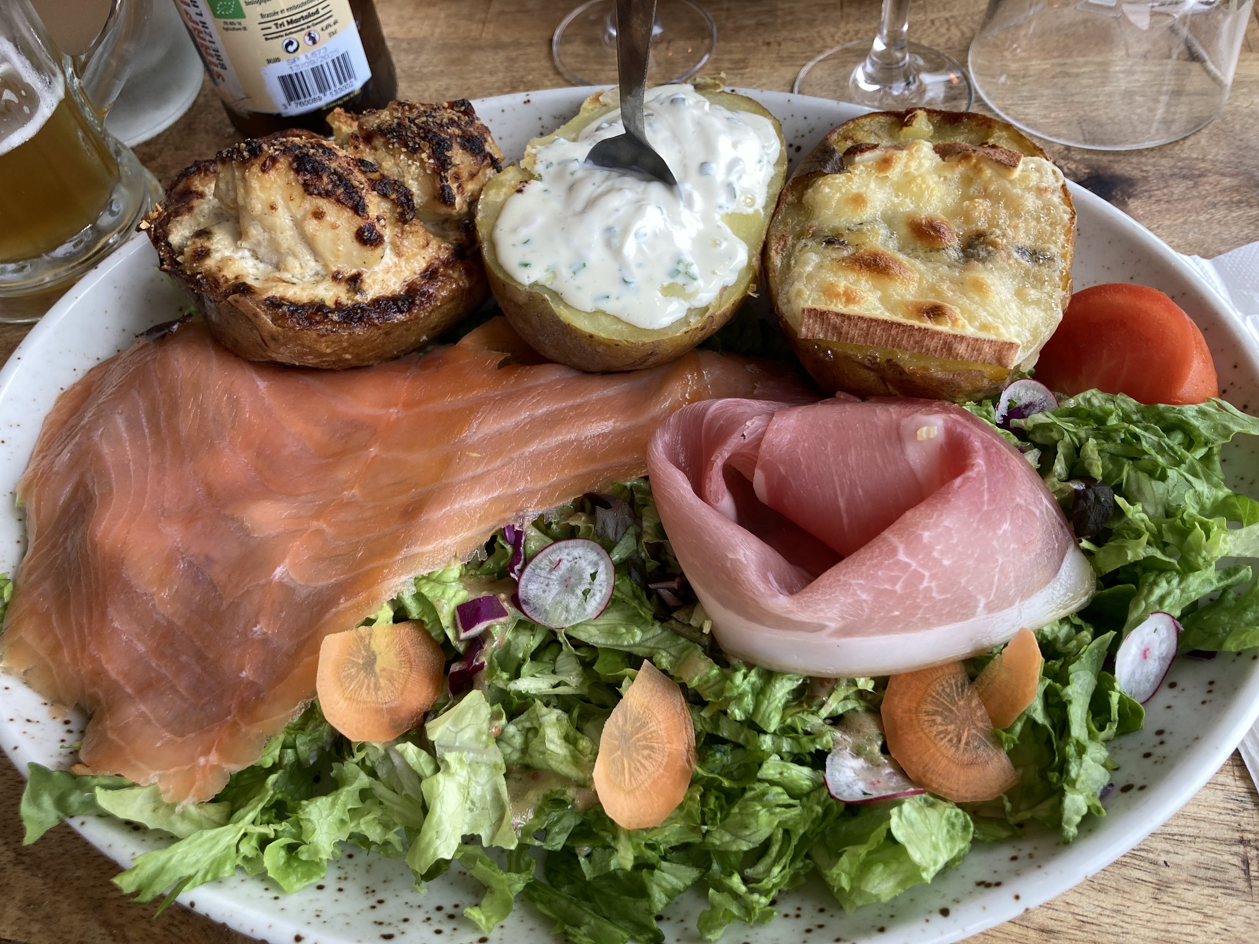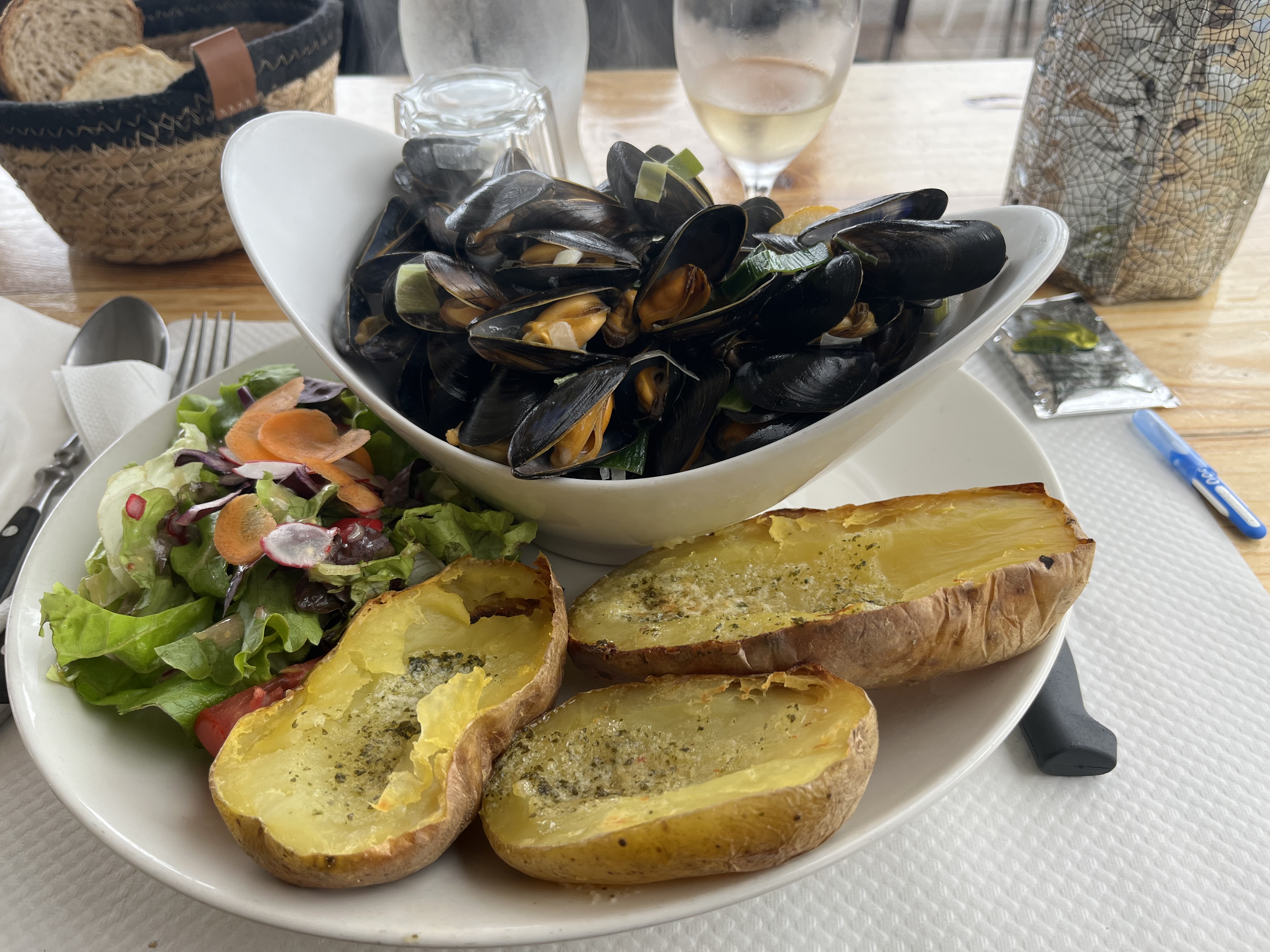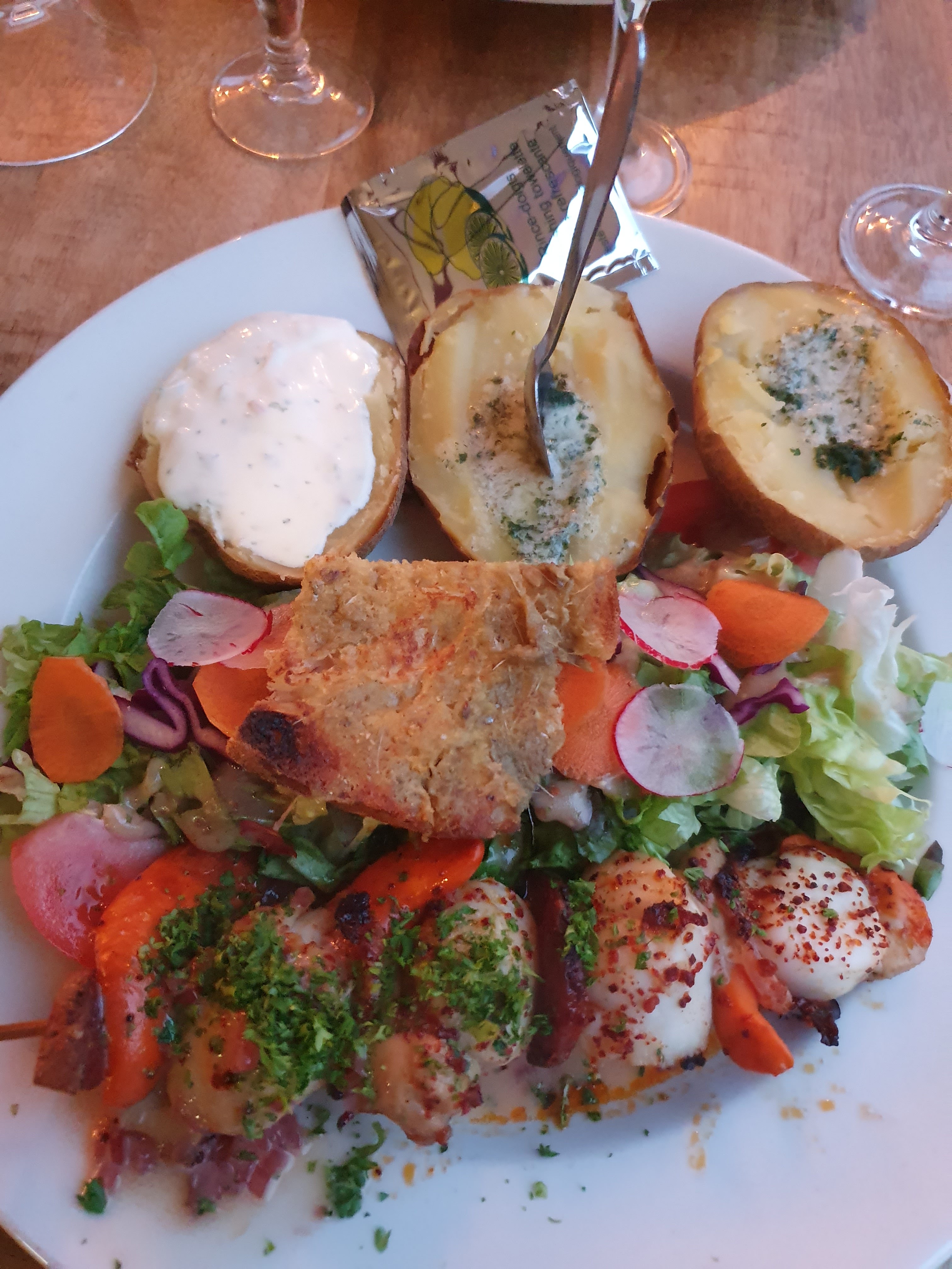 L'emplacement est juste dingue, Service sur réservation fort agréable et joyeux...jeune équipe passionnée... Dans l'assiette, très copieuse, le concept pomme de terre garnie avec diverses options...fonctionne pas mal.... Manque cruel de bigorneaux....