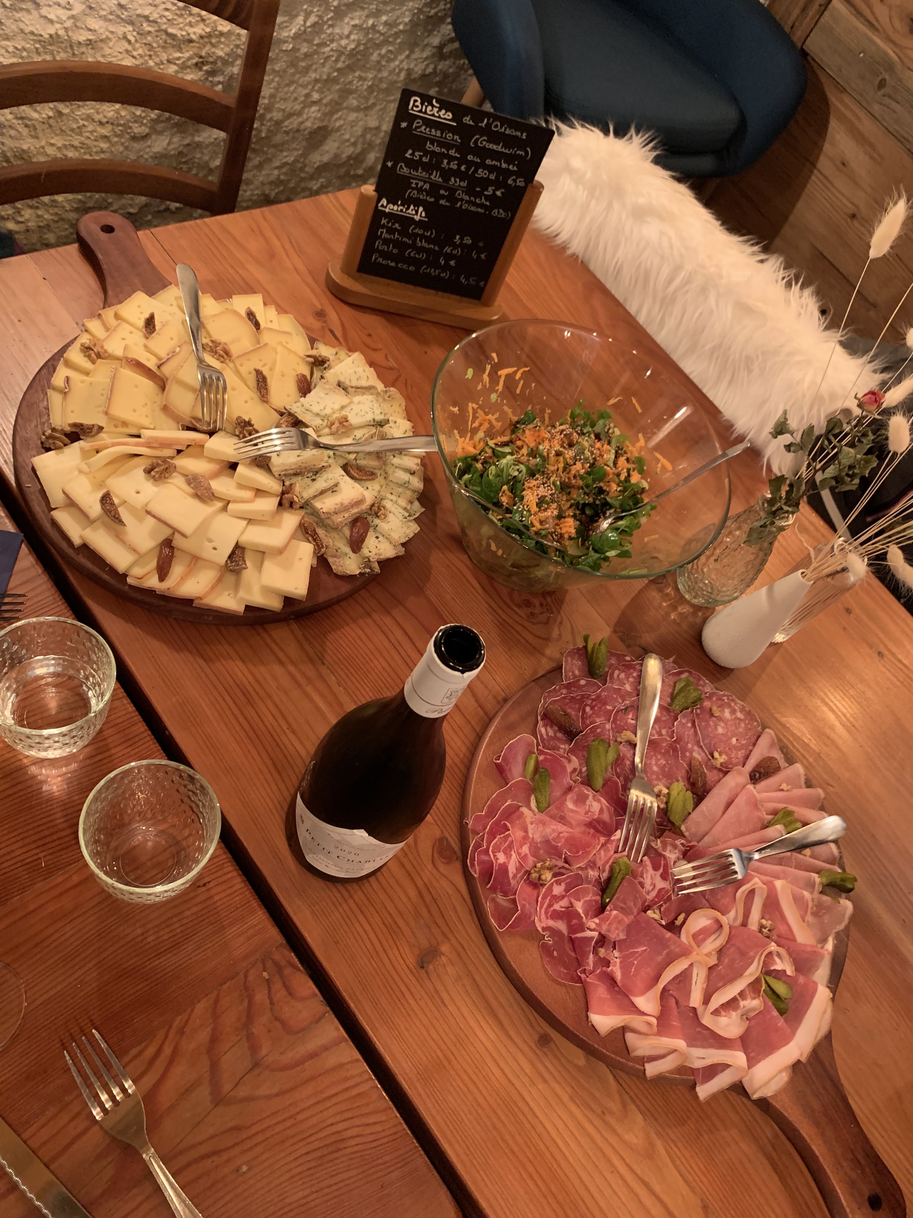 Repas en soirée avec deux amis, nous nous sommes régalés de tous ces plats faits maison avec soins et justesse , tout ça avec des produits locaux 👍 Chapeau à la gérante Caroline, le génépi était exquis 🥳