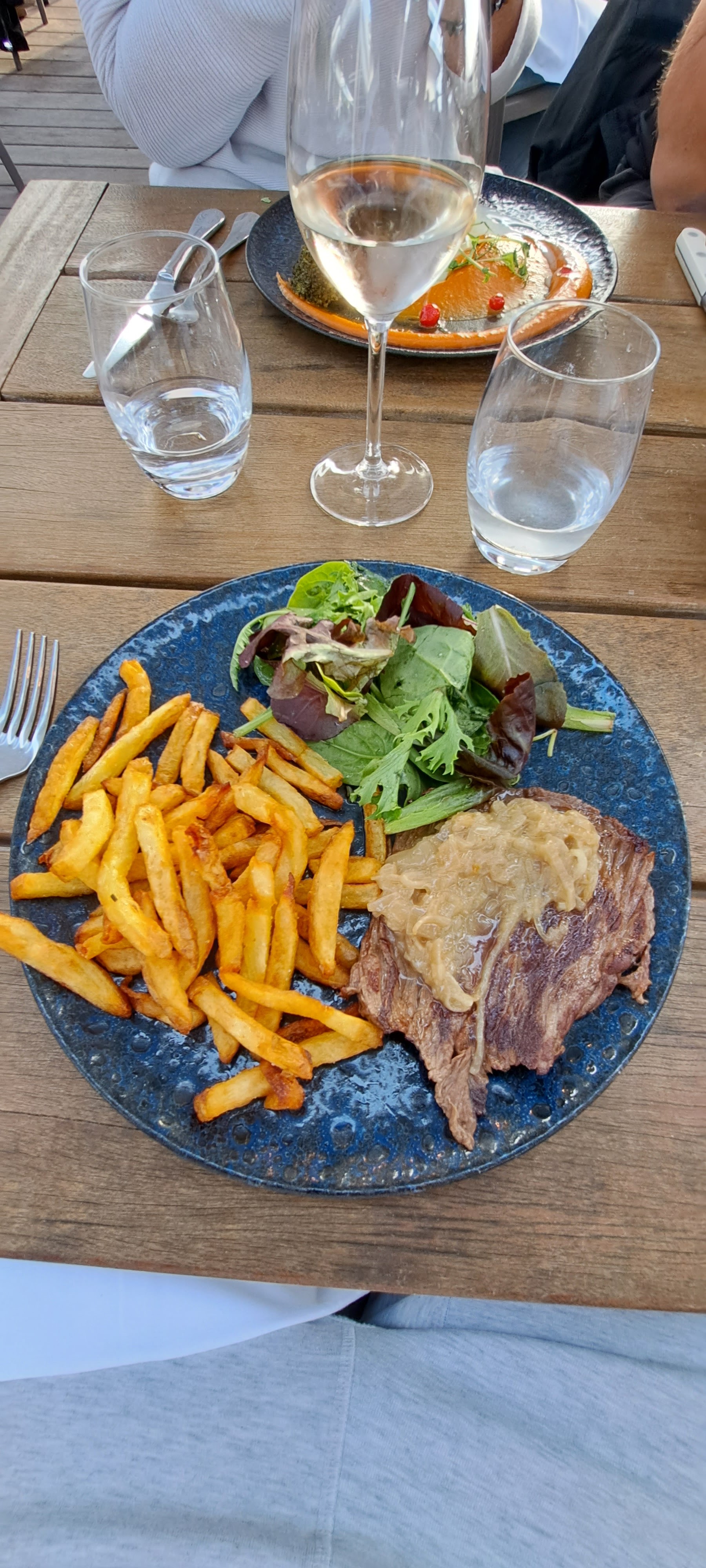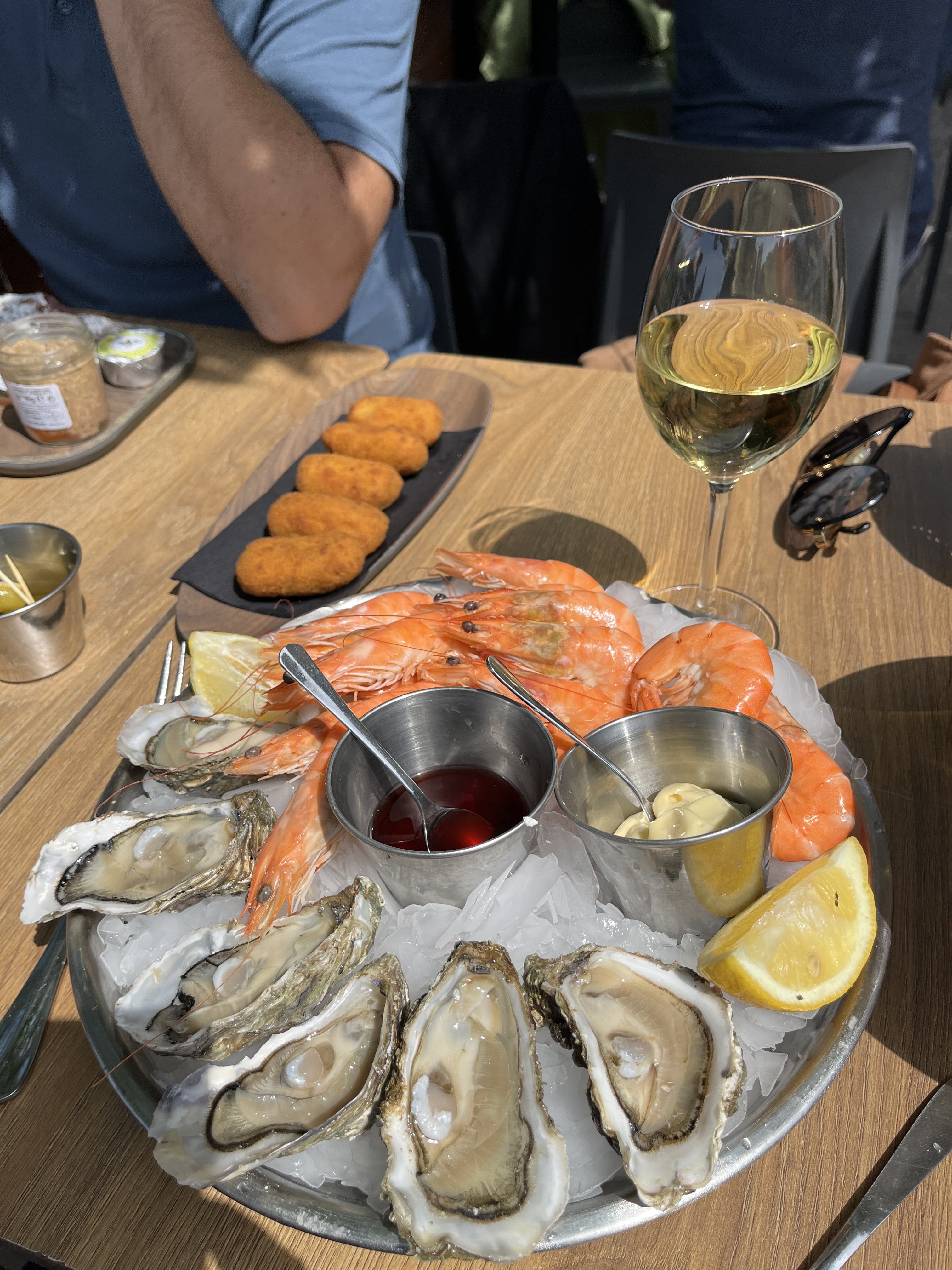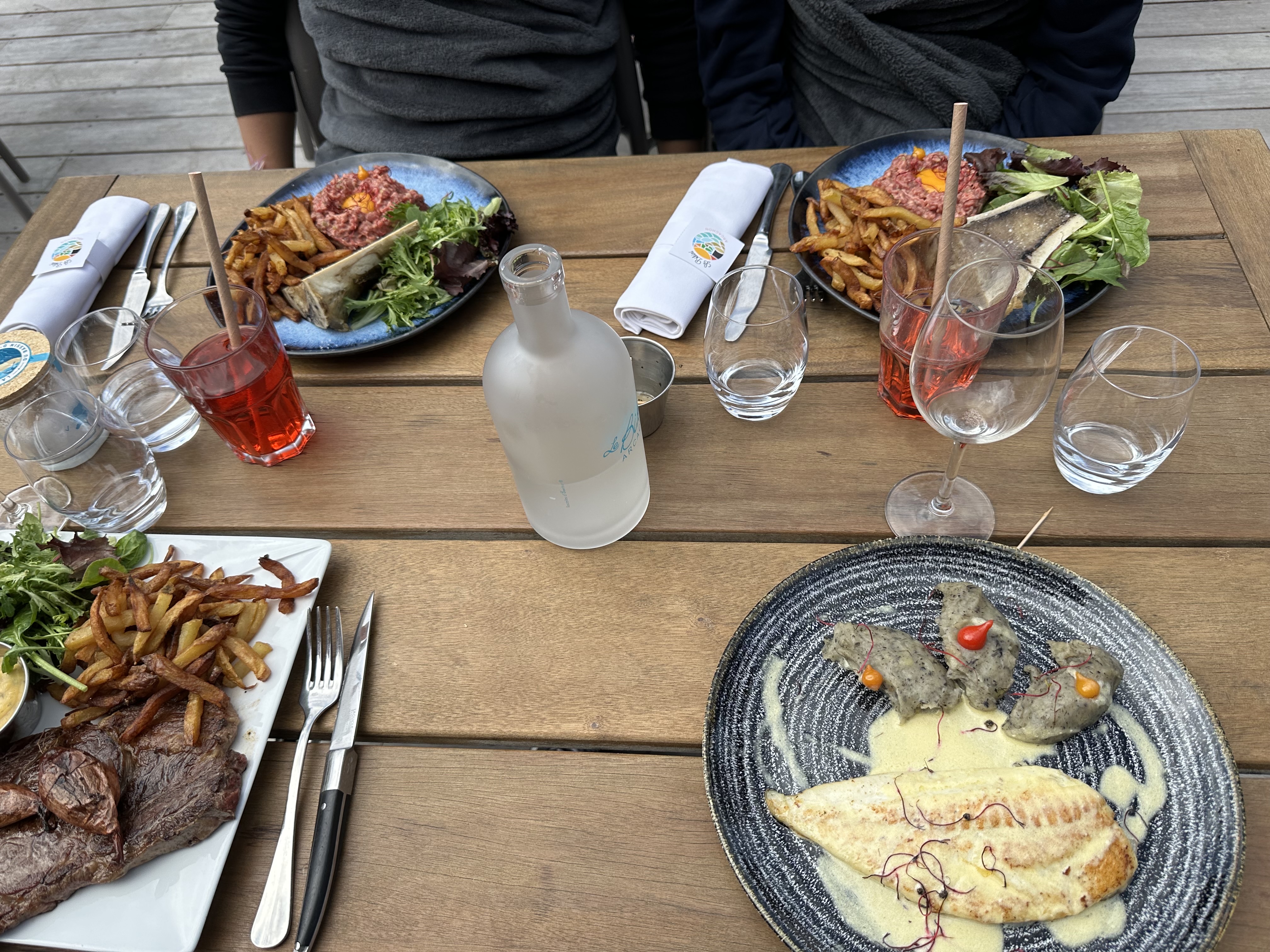 Super dîner, placés côté vitrine/fenêtre pour profiter de la vue sur bassin. Poisson entier et viande, on s’est régalé - je vous conseille les poissons d’ailleurs ;). Je pense que l’été, ça doit être génial de manger sur la terrasse. Décontracté et très bon service! Petit tips: Réservation très conseillée