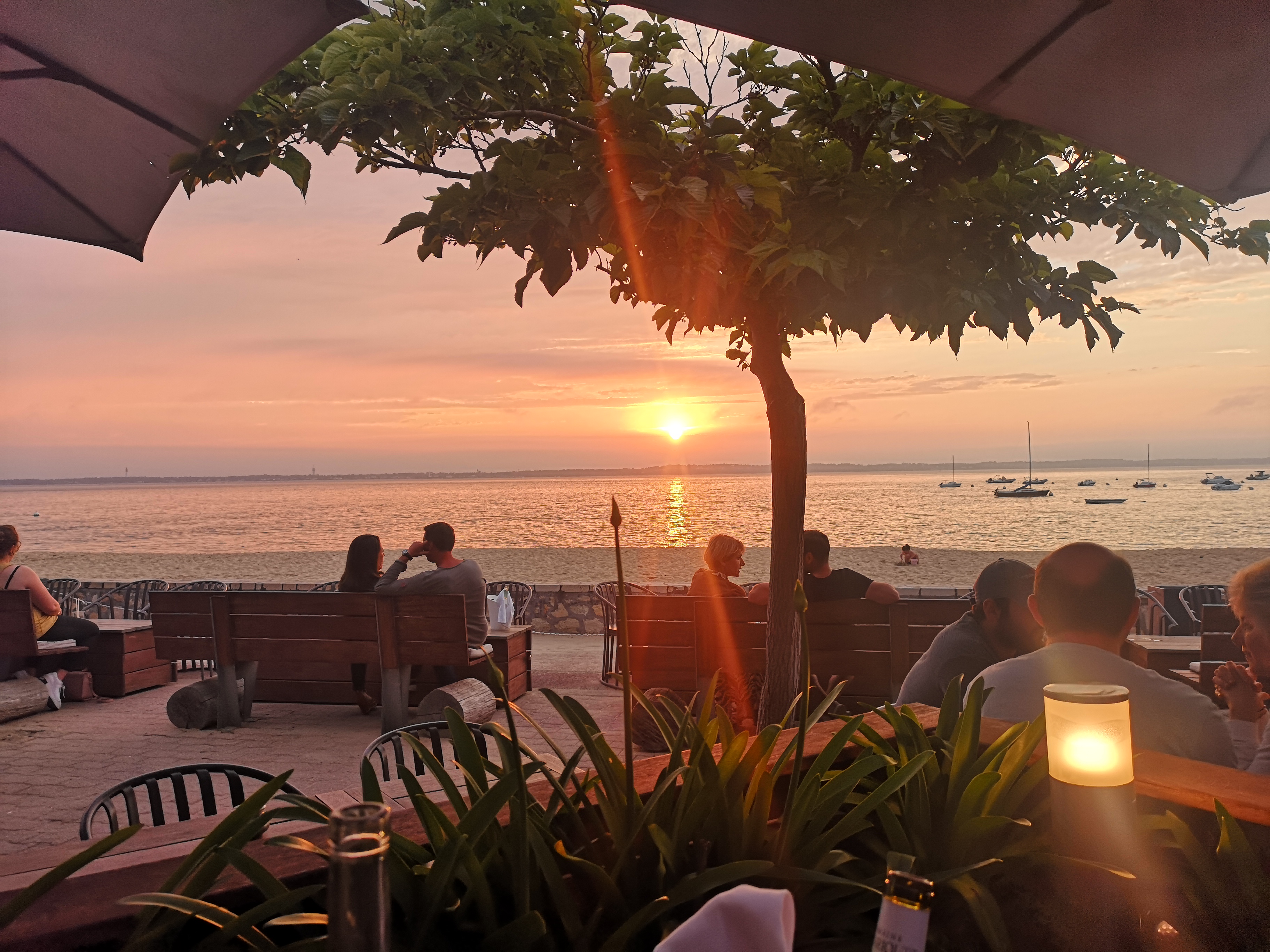 Très bon mais stressant, trop de monde un samedi soir. Magnifique coucher de soleil