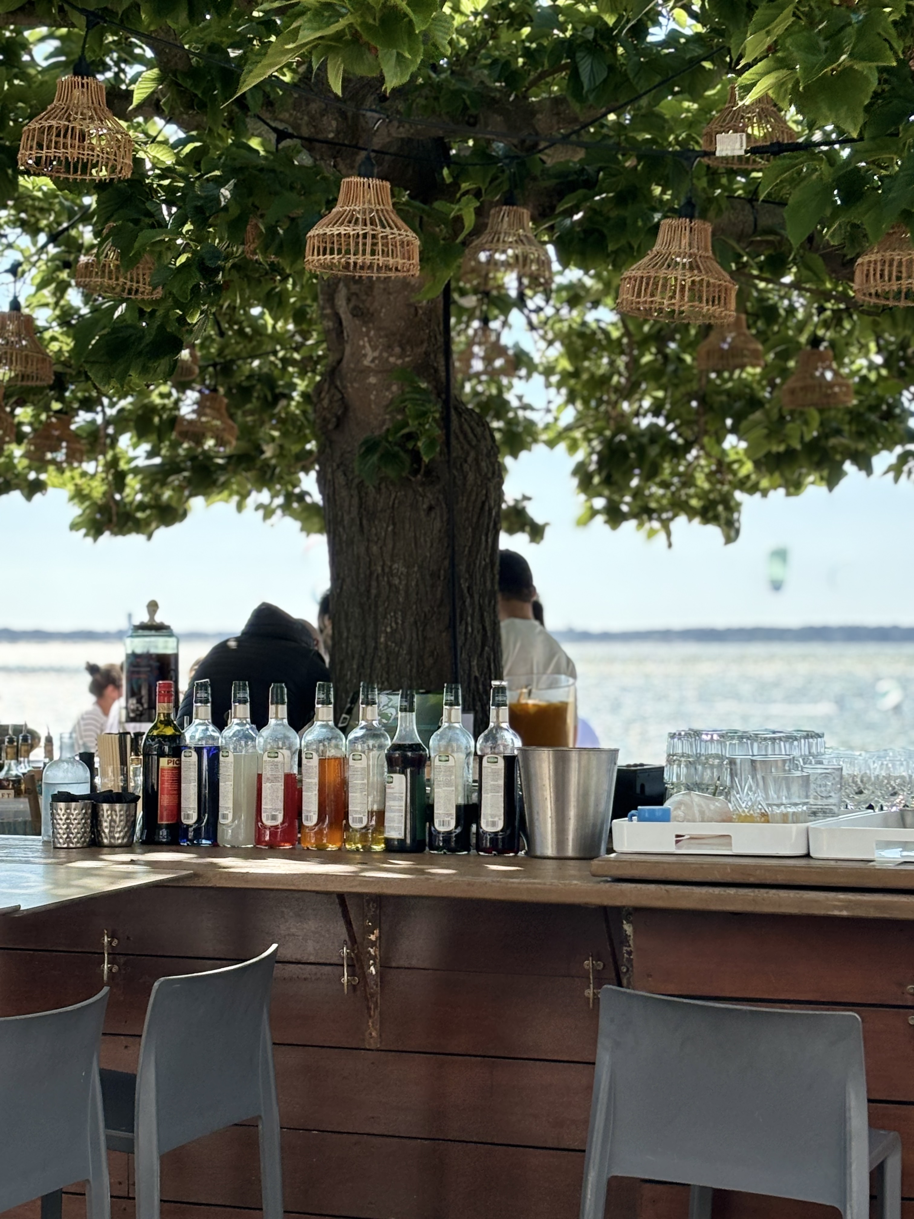 Il y a un Bikini ante-Avril 2019 et un Bikini post-Avril 2019. Nous sommes instantanément tombés sous le charme du bar “façon îlot bar de piscine club-hotel-de-luxe” joyeusement ombragé et proposant une vue somptueuse sur le bras de terre du Cap ferret. Apéro de rêve, avec saucisson entier ou fromage de brebis des pyrénées. Vous enchainez sur un repas en terrasse, où les assiettes sont généreuses, très masculines en bouche avec force aïl, mini poivrons sucrés, espadon à la sauce argentine inimitable “chirimirri”, turbot à la sauce vierge. Service impeccable. Une adresse “must try” légèrement en retrait du centre du Moulleau.
