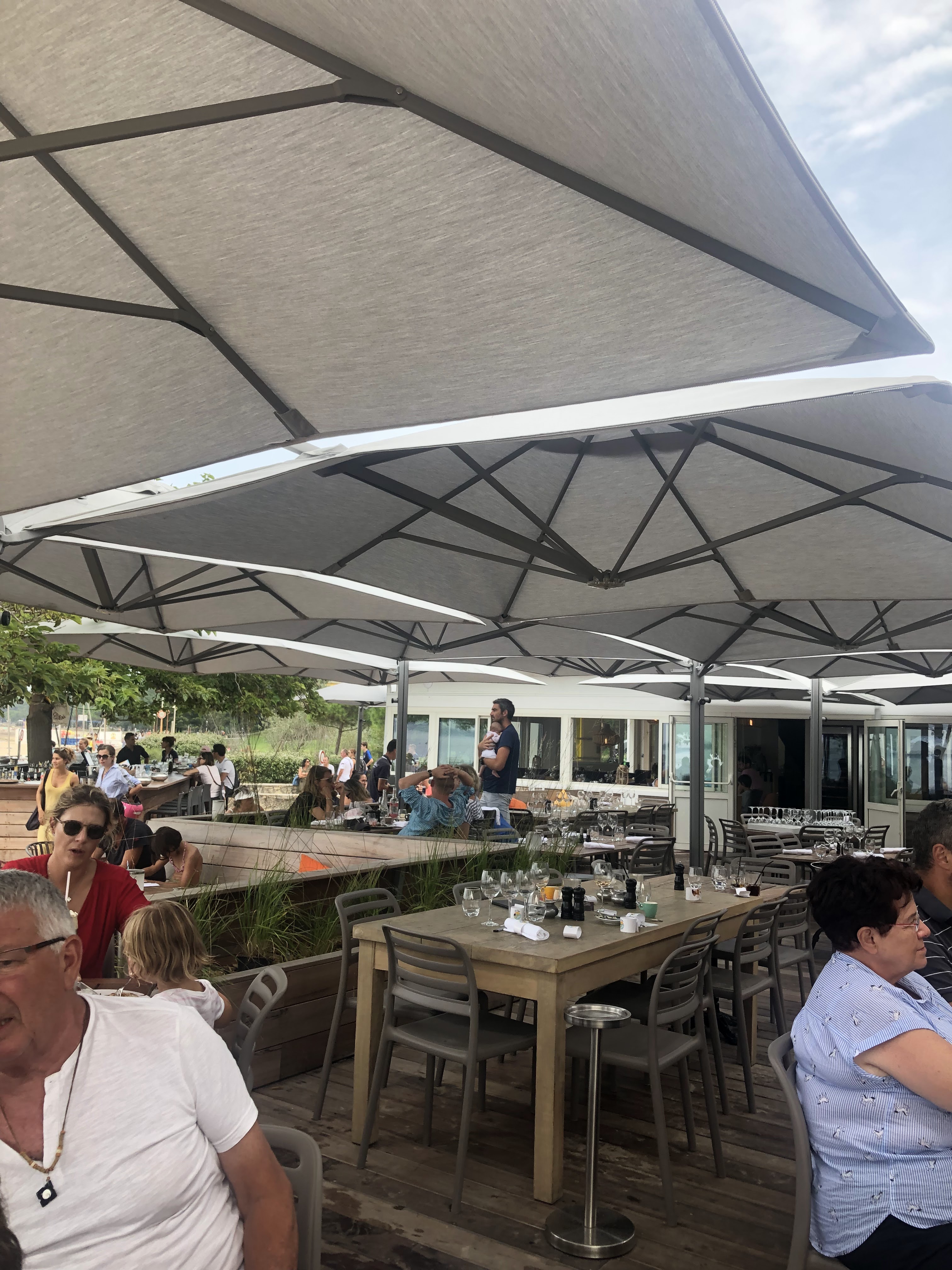 Nous sommes venus déjeuner en famille un samedi. Nous avions réservé je précise :, accueil mitigé lorsque nous demandons une table en particulier c’est à dire à l’ombre, donc pas possible de choisir sa table. Une fois la commande passée les plats sont arrivés à la vitesse de l’éclair, nous n’avions pas encore nos boissons. Les quantités limites, quelques carottes avec le filet de poisson pour 27 euros le tout dans une sauce à l’huile ultra grasse. Bref , nous avons été expédié et n’avons absolument pas profité . Qu’en sera t’il au mois d’août ? Nous n’irons pas vérifier