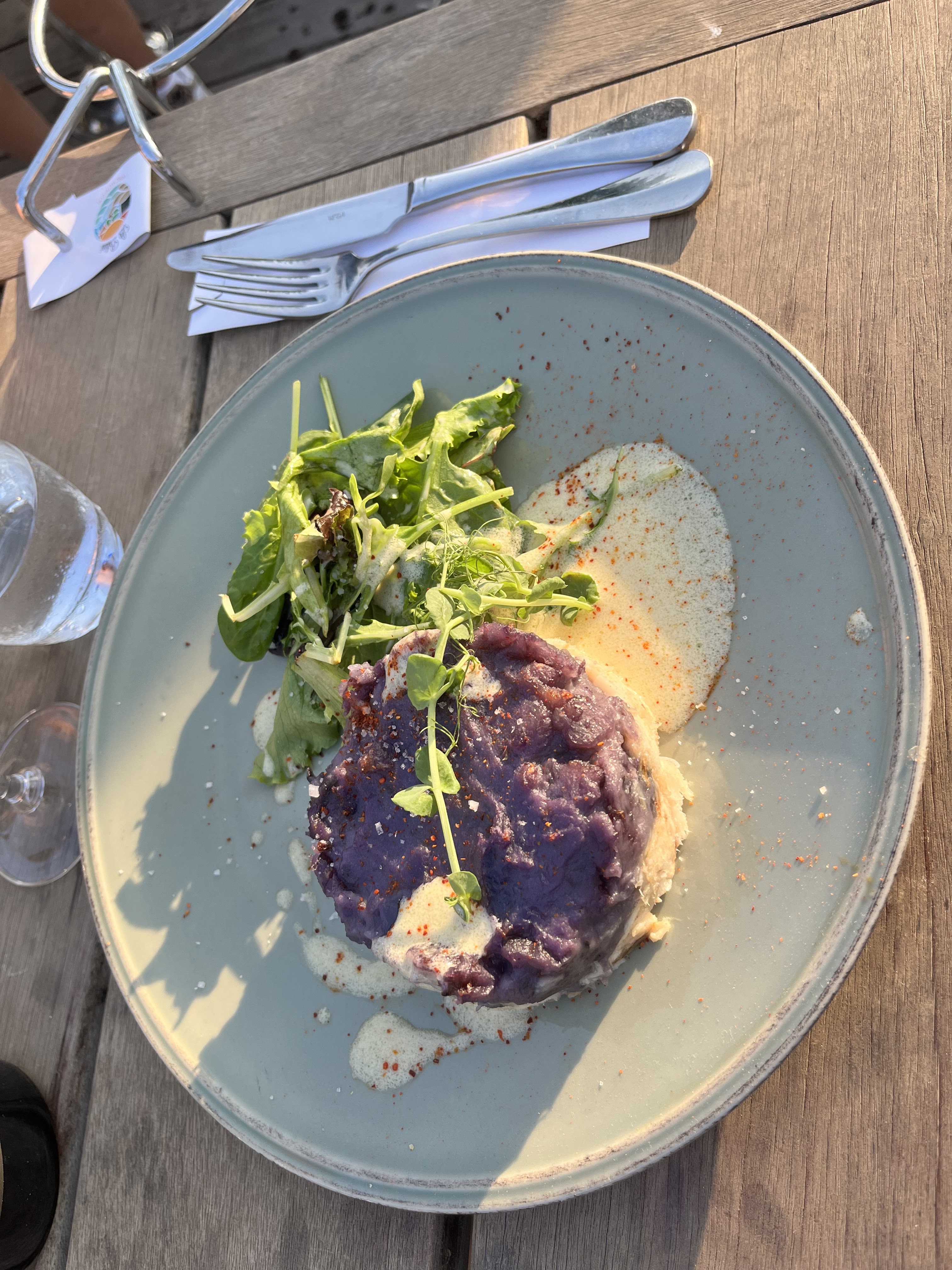 Restaurant très bien situé, surtout si l'on veut admirer les couchers de soleil ☀️. La nourriture est bonne et le personnel très sympathique. Pour ma part, j'ai mangé le Turbot avec son écrasé de pommes de terre. La cuisson du poisson était maîtrisée et les saveurs étaient là. Un endroit à faire pour sûr.