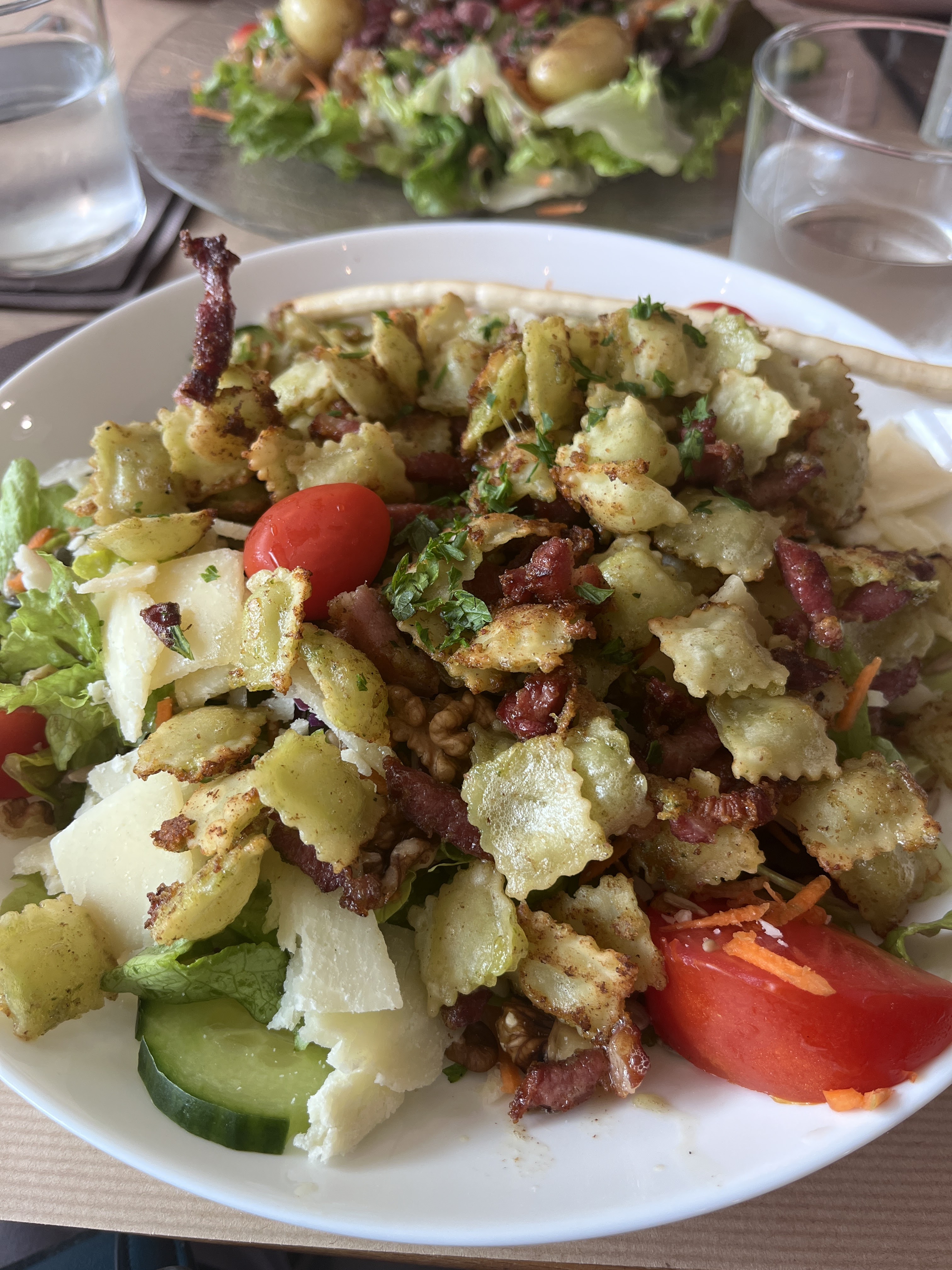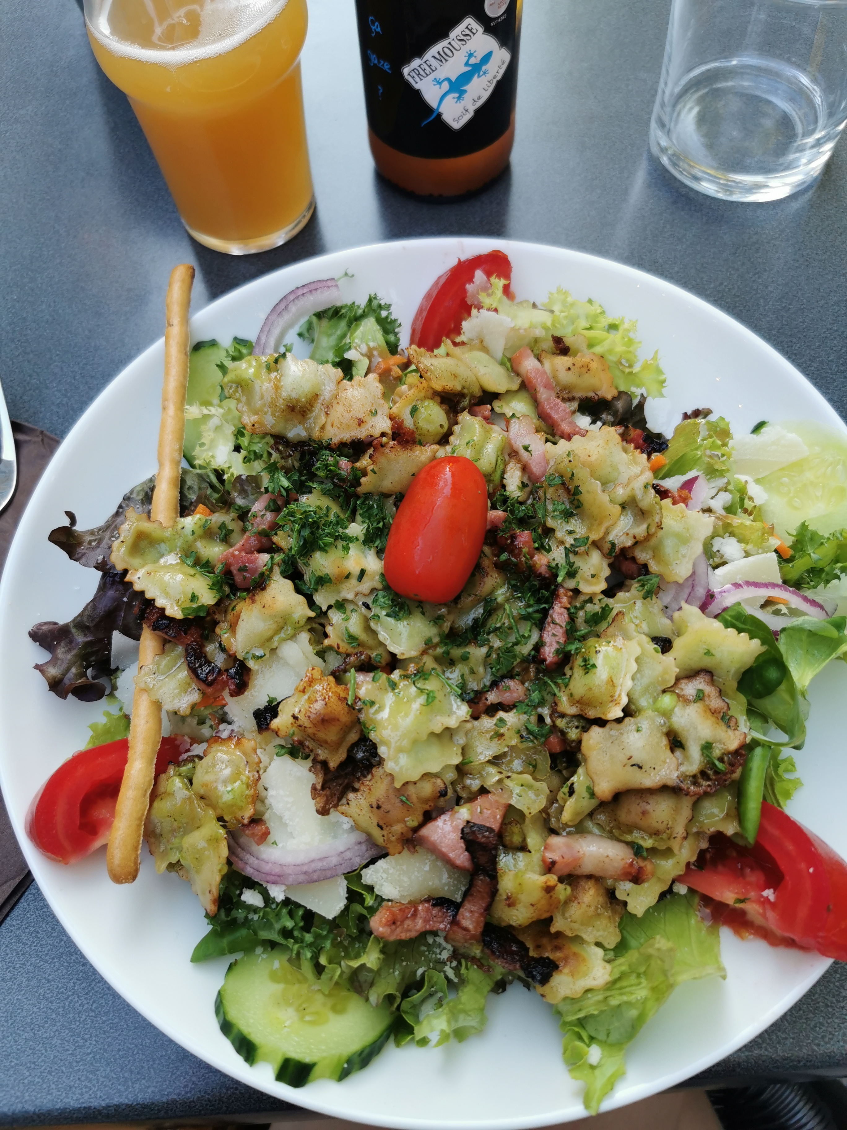 Accueil sympa, j'ai pris une salade de ravioles qui était bonne et plus que copieuse! Je conseille le lieu sans problème!