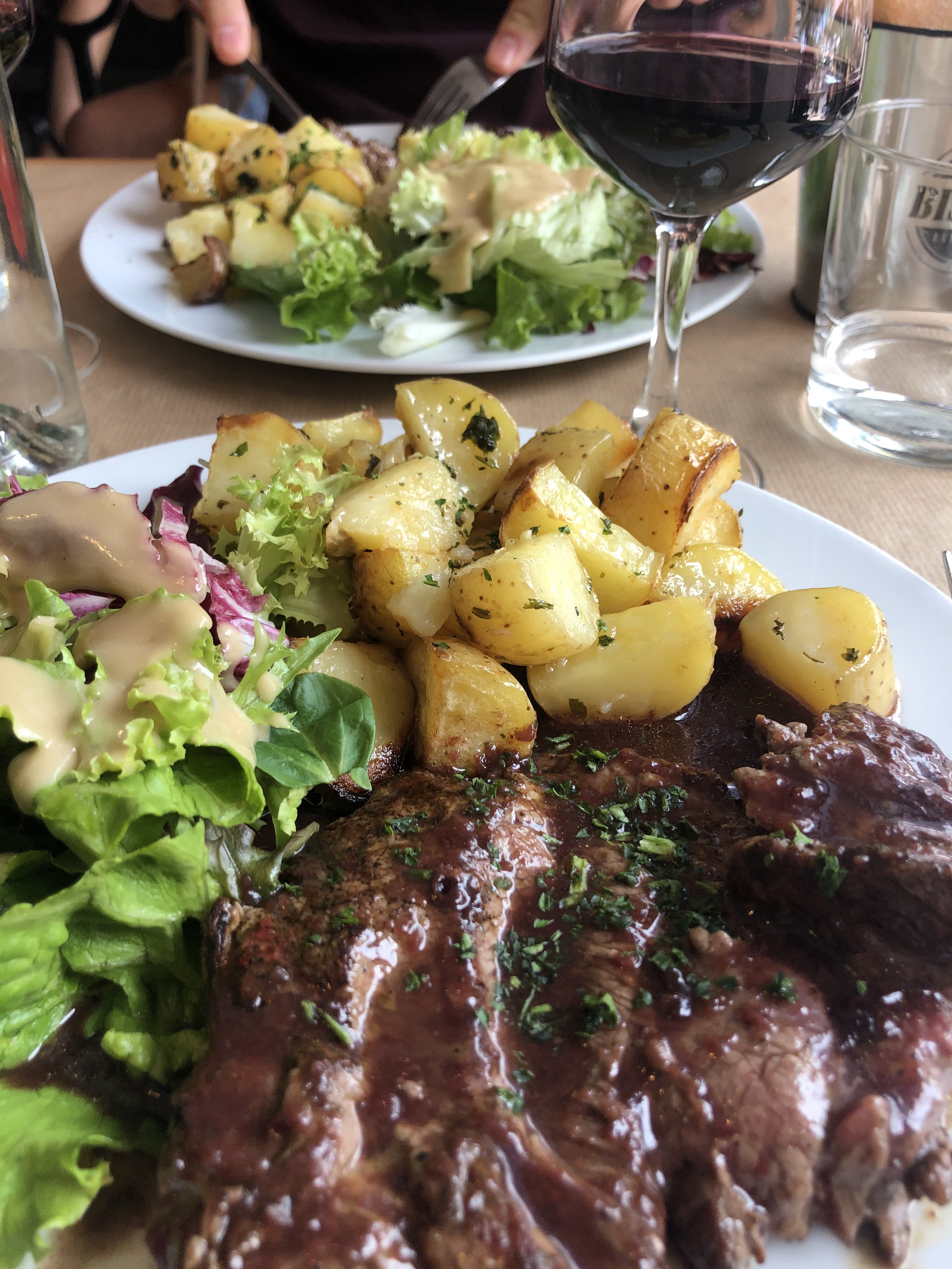 Hier soir en famille. Plats vraiment bons et frais. Des choses simple enfin simplement bien cuisiner. Bien placé restaurant grand ouvert même a l'intérieur on a l'impression d'être en terrasse. Service efficace. De bons vins abordable. Le Croze au verre est top. Un très bon rapport qualité prix 👍 64 euros 2 plats (bavette et ravioles) 2 desserts (crème brûlée et tiramisu châtaignes) 3 verres de vin et un menu enfant (steak frite très bon + glace)