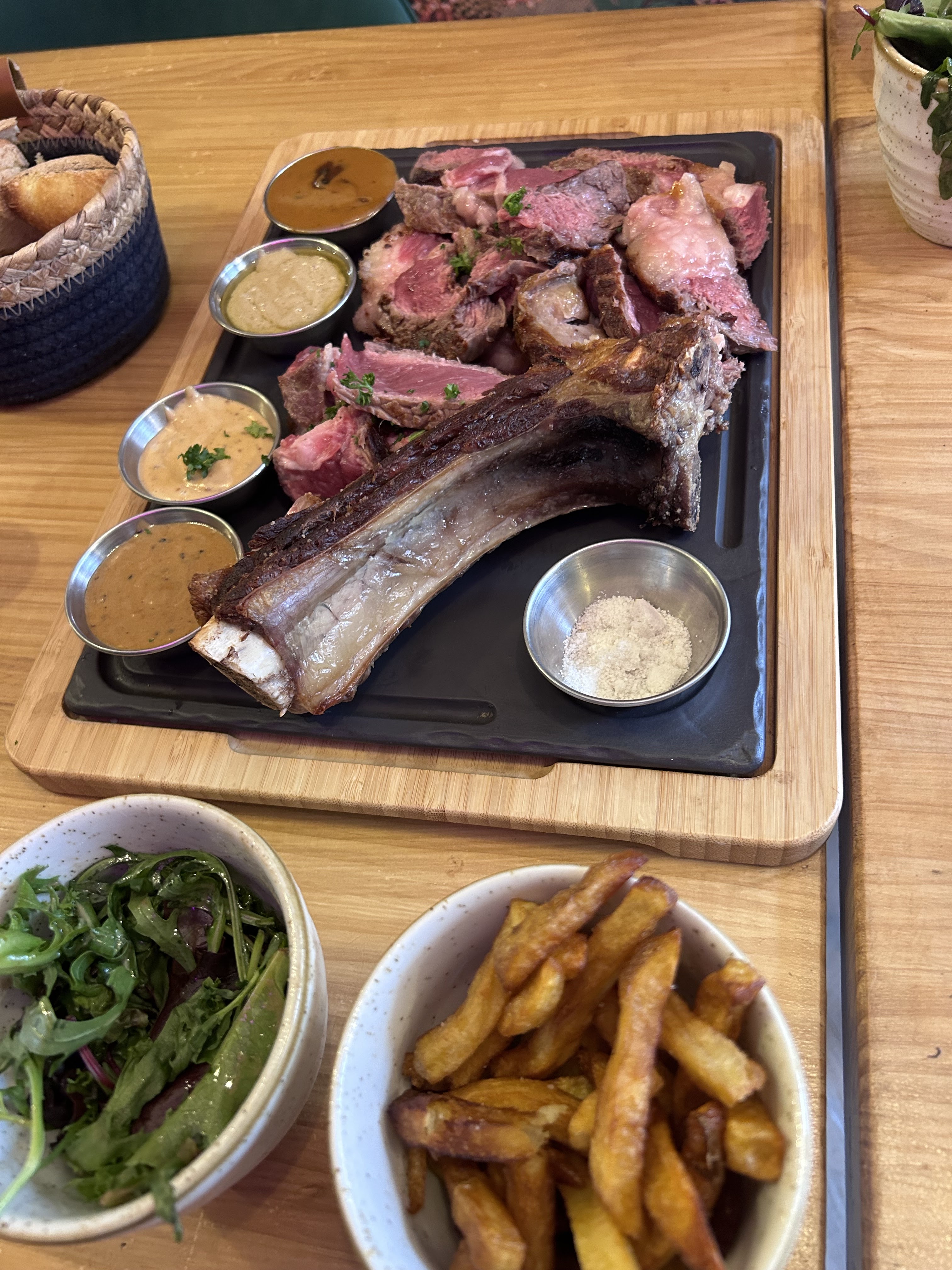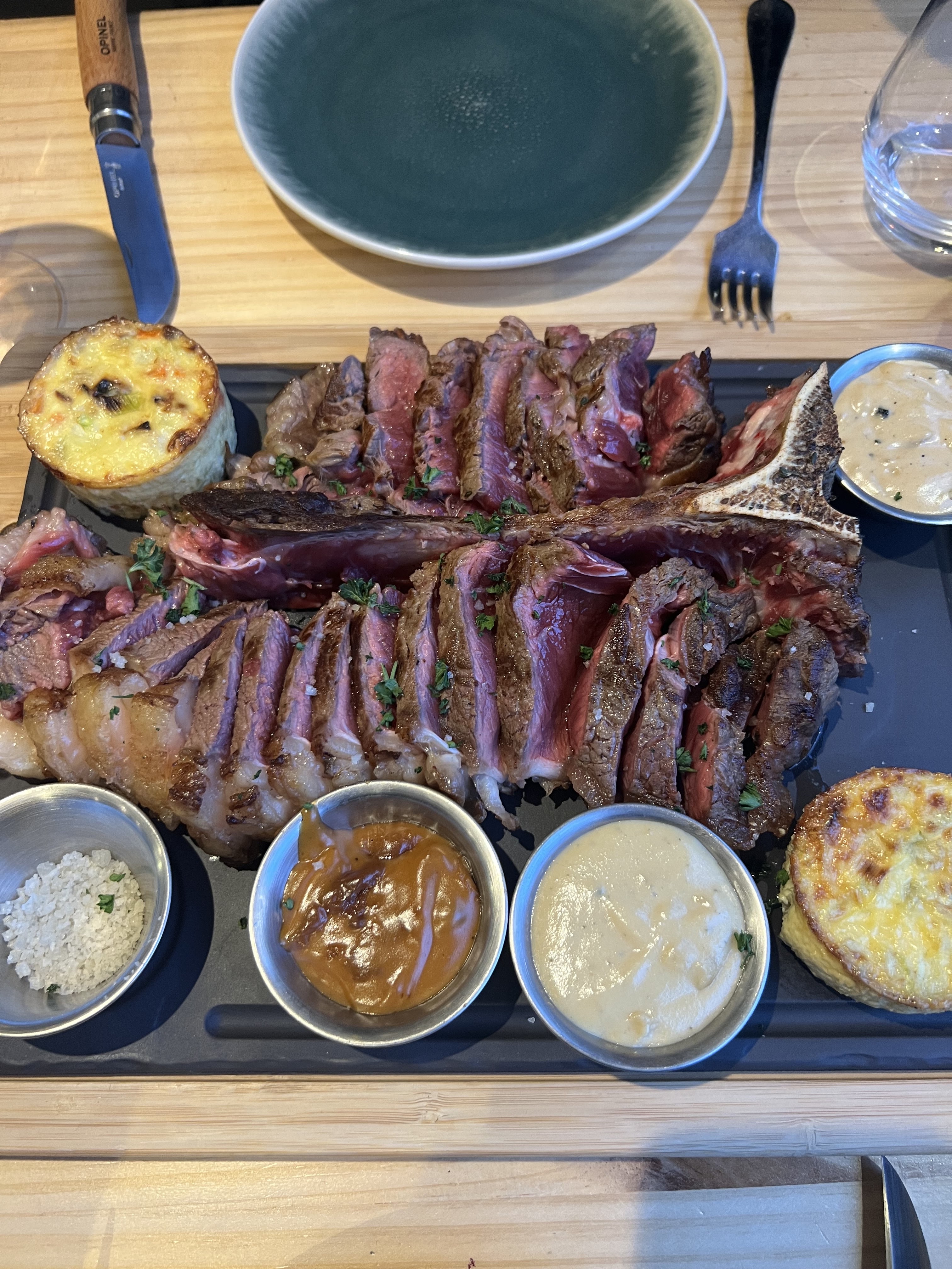 Superbe À deux, une côte de bœuf avec de somptueuses sauces! Dessert au top Service vraiment agréable Merci pour ce moment :)
