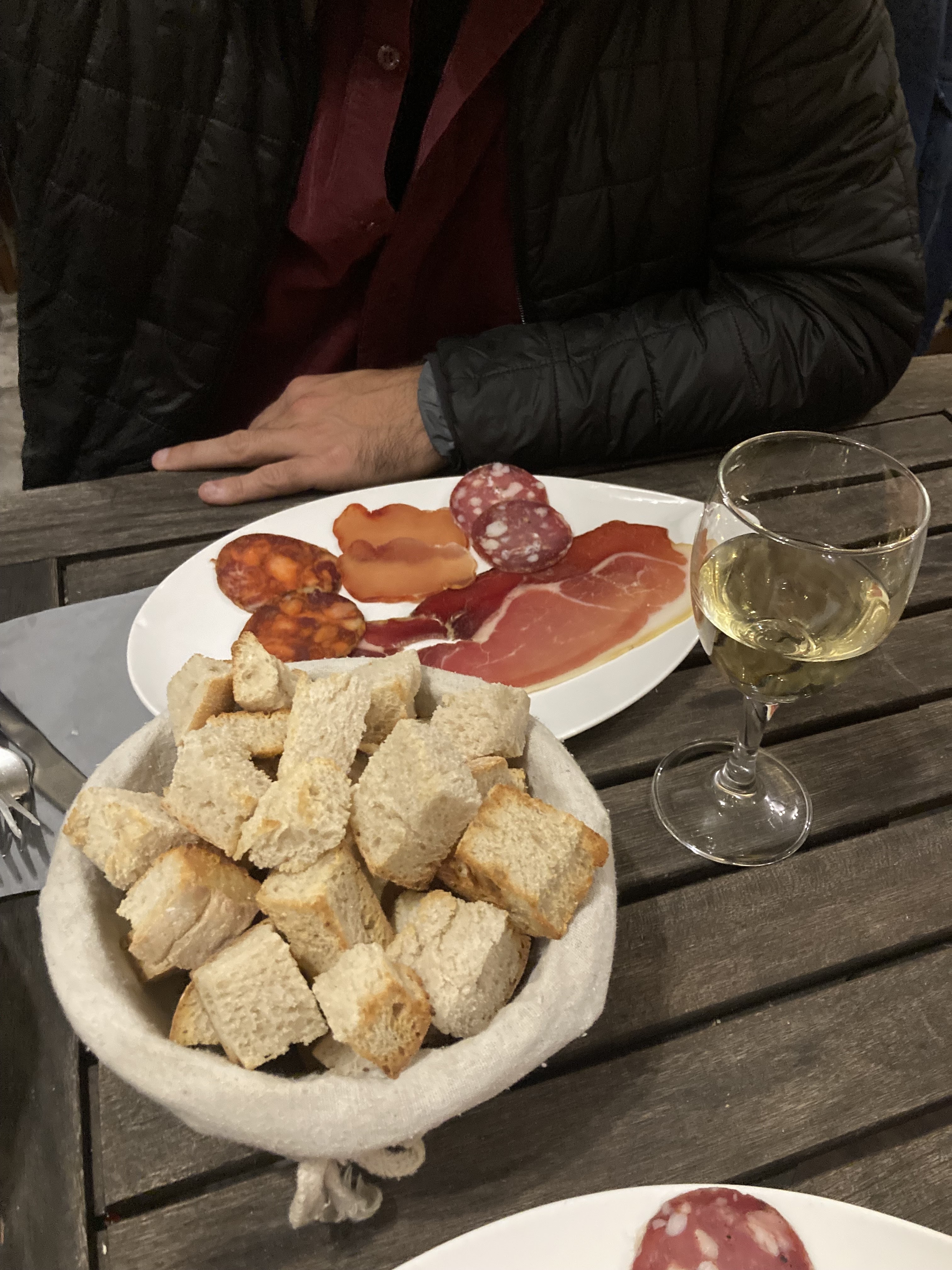 Restaurant de taille moyenne avec partie bar et partie salle à manger. Nous sommes allés dîner un soir et ils nous ont assis dans la salle à manger. Pour partager, nous avons commandé de la truite fumée accompagnée de citron, de pain et de beurre. Pour le plat principal, nous avons partagé une fondue au fromage avec une planche de charcuterie et du pain. Tout était très délicieux, les portions étaient adéquates et le prix était acceptable (30 € par personne avec deux verres de vin). Le serveur était très sympathique et parlait espagnol. Comme la plupart des restaurants de la ville, ils sont ouverts uniquement pour le dîner et nécessitent une réservation car ils sont toujours complets, même en semaine.