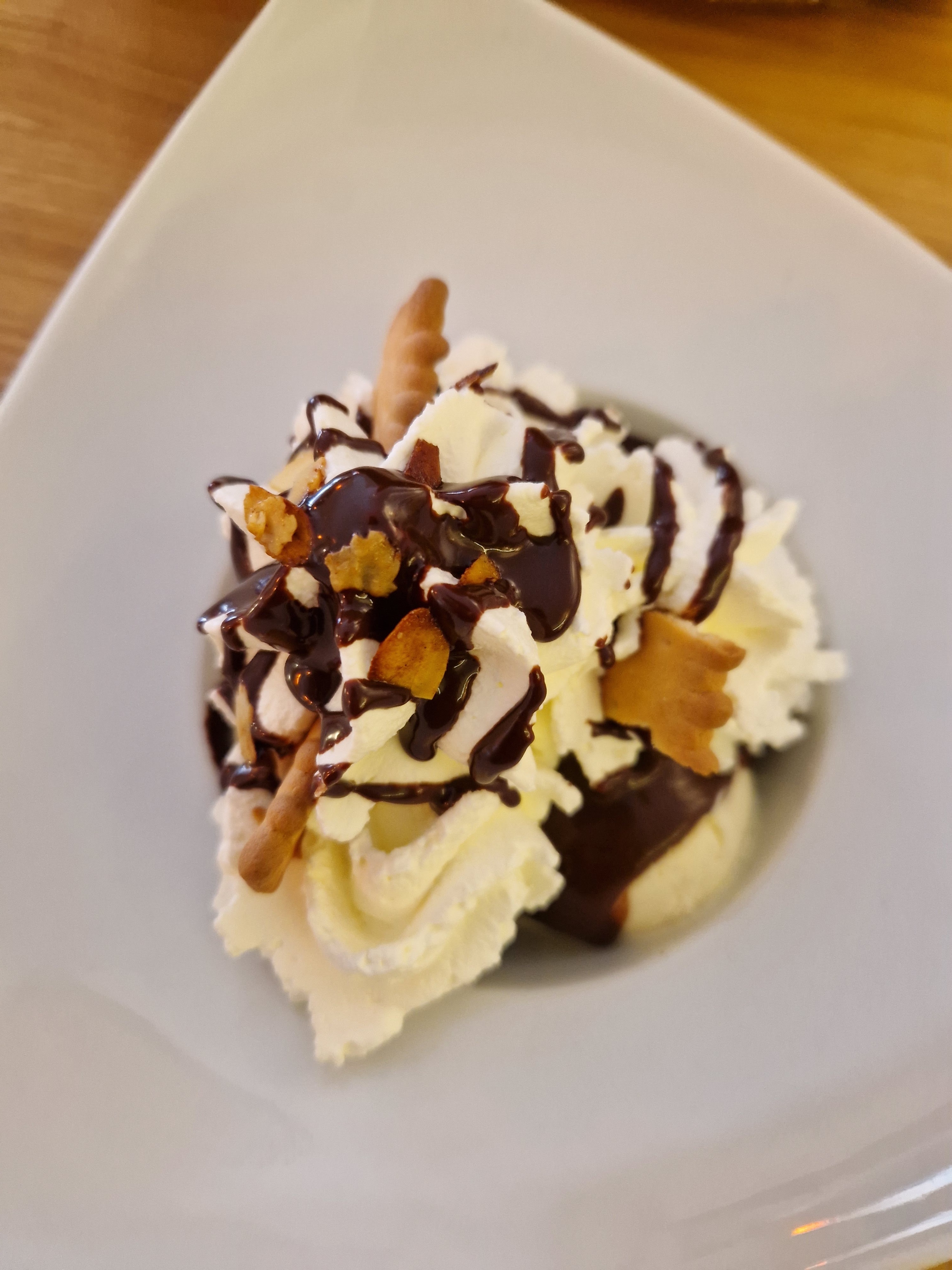Bon chocolat, bonne crêpe en terme de goût. Présentation simpliste de la crêpe. Chocolat industriel mais le goût est tout de même bon. Accueil correct. En revanche le petit accompagnant pour le chocolat se colle aux dents telle du béton. Accompagnant au caramel bas de gamme malgré le prix du chocolat.