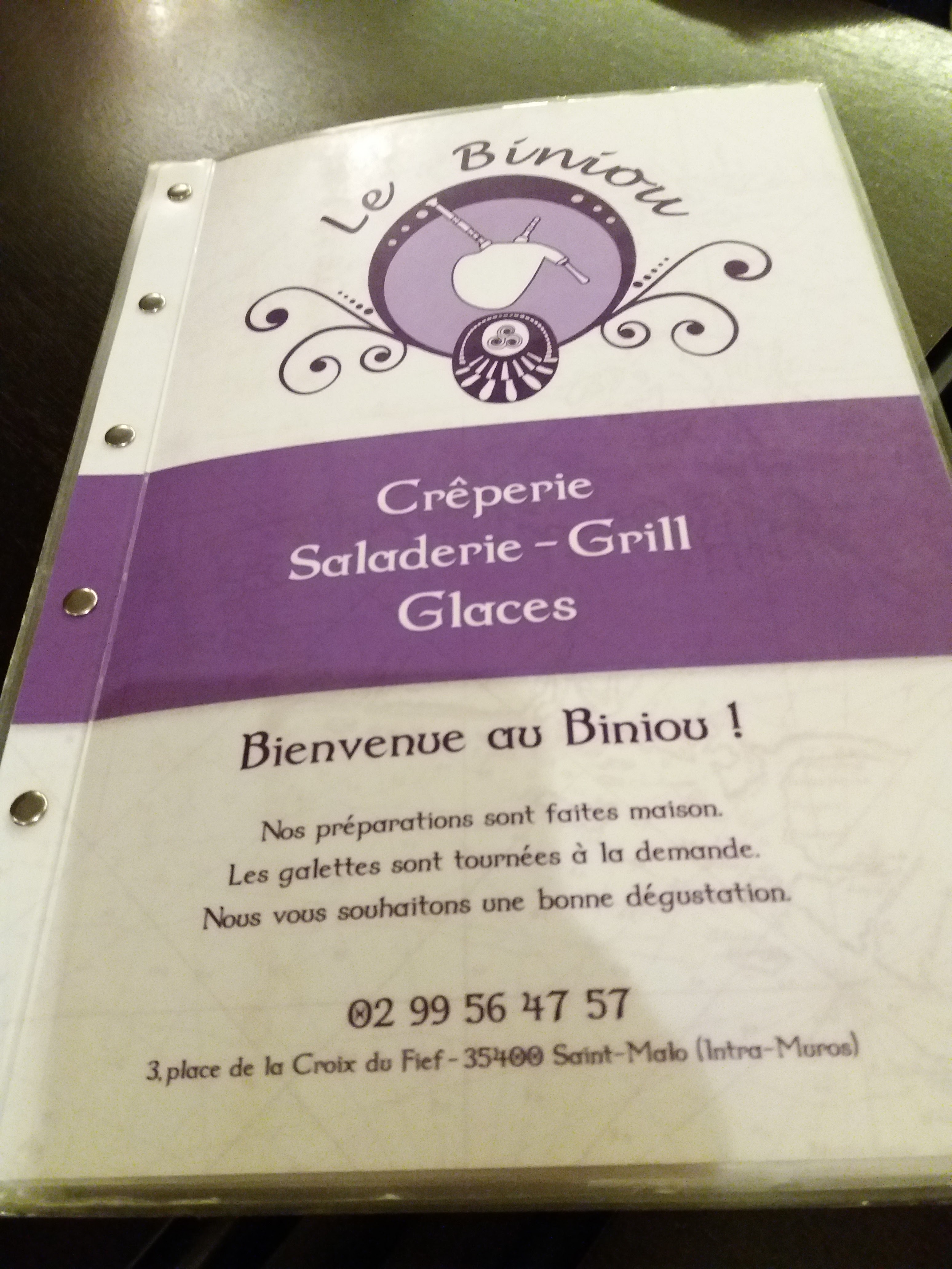 Nous avons cherché une petite crêperie dans saint malo intra muros dans la multitude d'autres restaurants nous avons donc franchi les portes du biniou et nous avons été agréablement surpris de la qualité des plats des crêpes délicieuses Mention spéciale pour la glace à la pomme cidrée une merveille ❤️