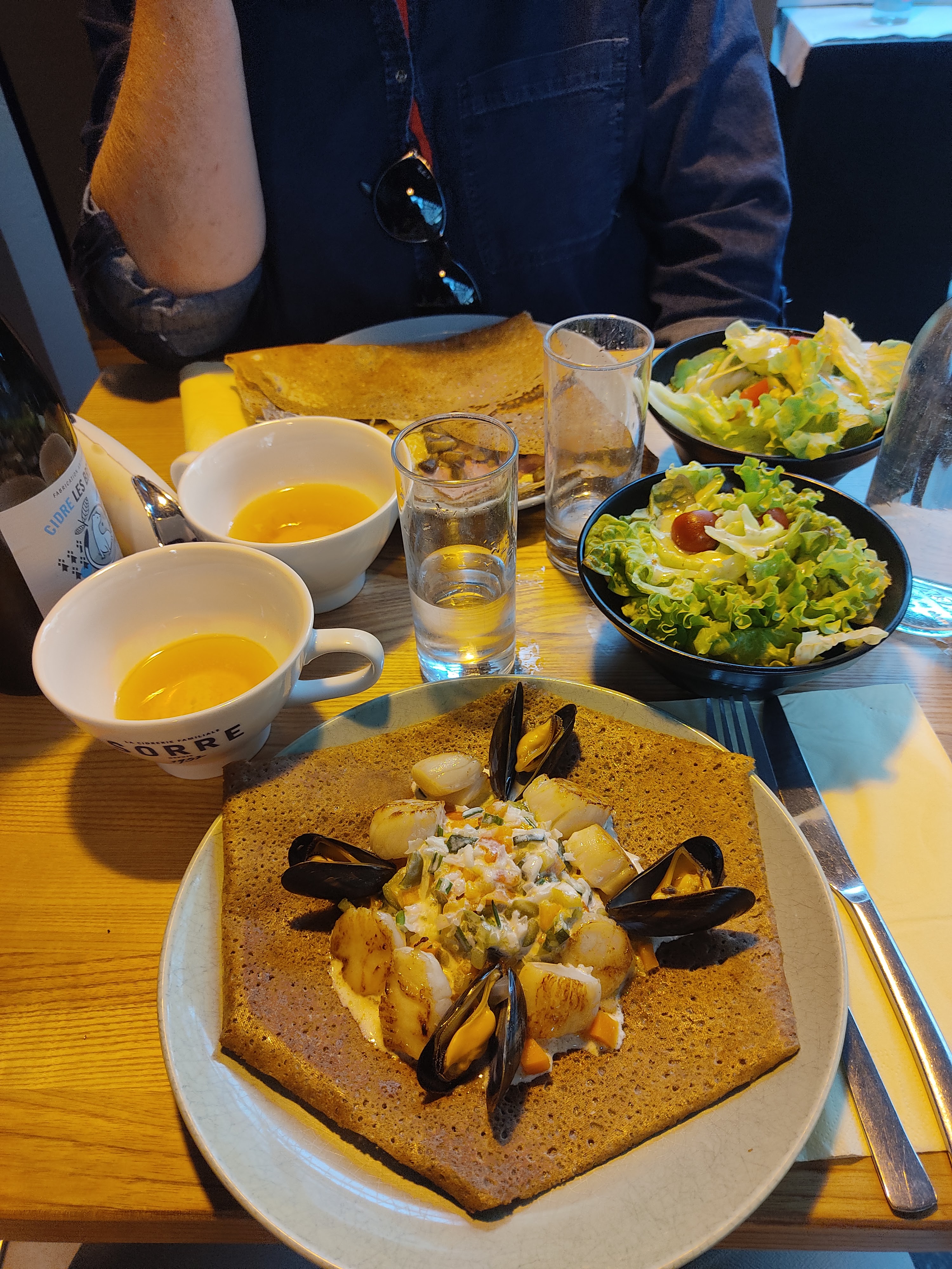 Un plaisir de découvrir ce charmant petit restaurant. Dès l'arrivée, nous avons été très bien reçus. Dîné agréable, bien installés au premier étage, serveur très sympathique et efficace. Nous vons pris une galette complète (oeuf, jambon, tomates et champignons), ainsi qu'une galette au saumon avec crème et ciboulette. Un régal, et le merveilleux cidre brut Sorre, miam' !!! Nous recommandons ! 🙂