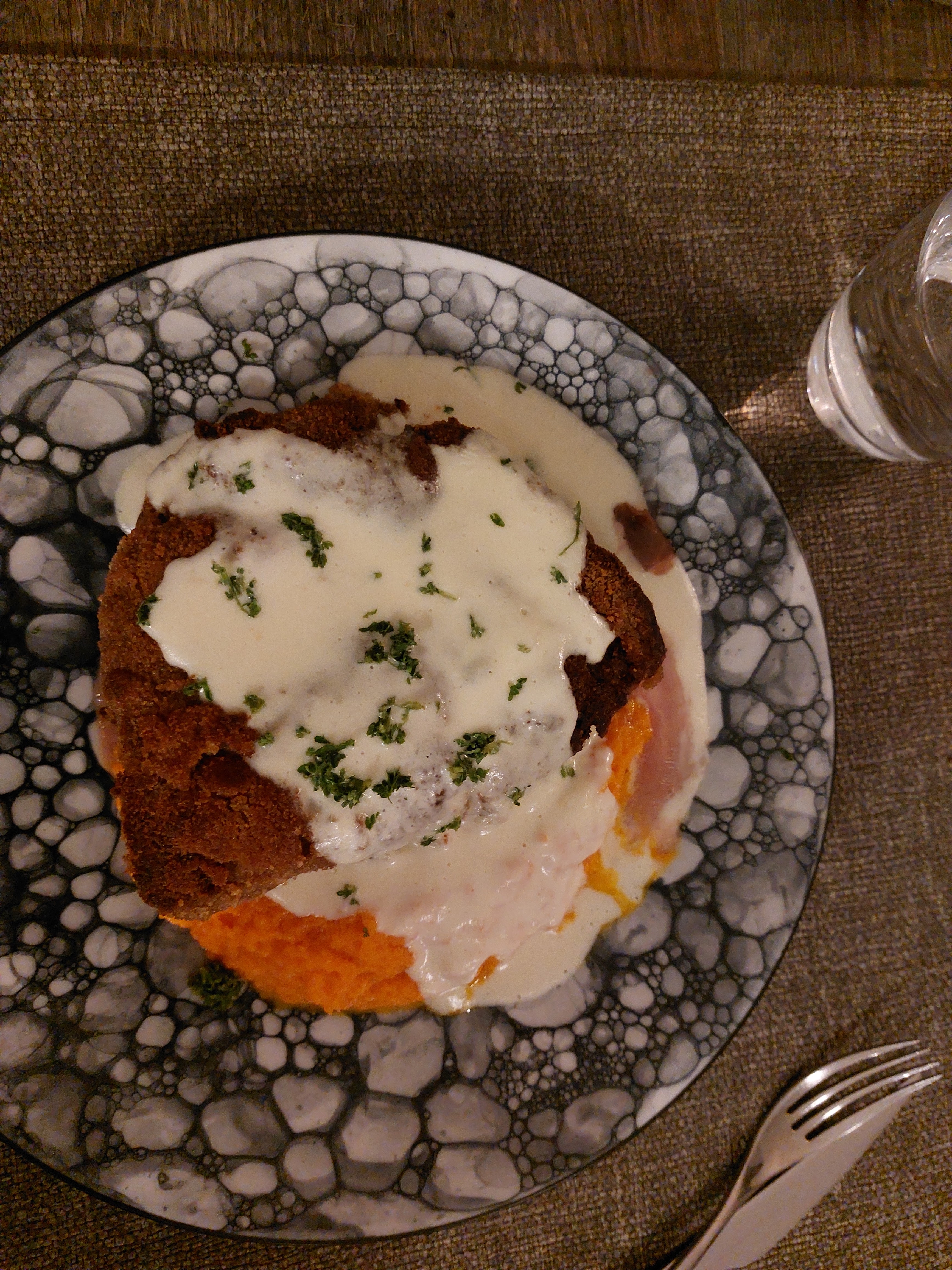 Cuisine maitriser et gouteuse, la chance d avoir eu la salle a l etage seul avec ma compagne n a rendu le moment que plus agreable, service parfait, au plaisir de repasser par cette ville, tres bel etablissement.
