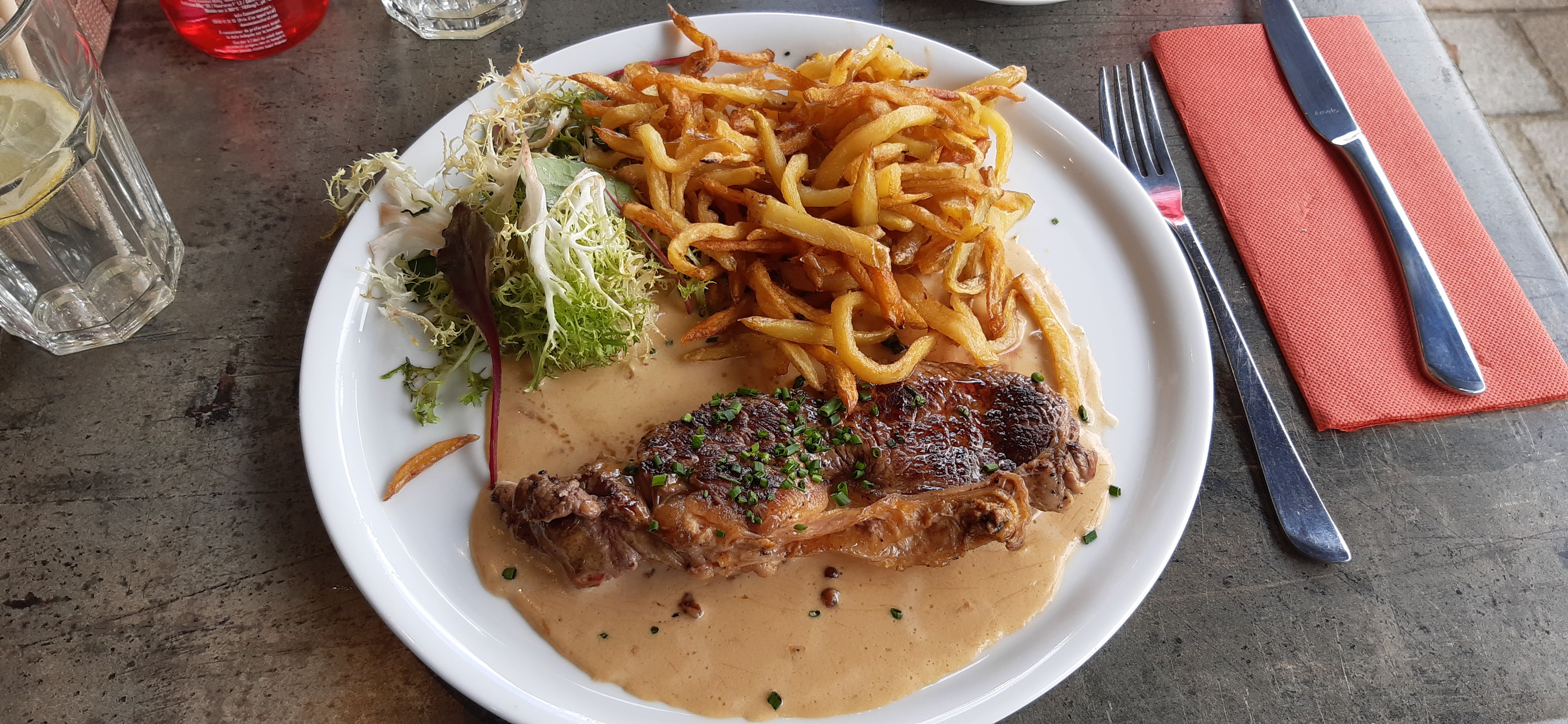 Plat du jour : bavette et béarnaise Viande très tendre Béarnaise maison Service efficace