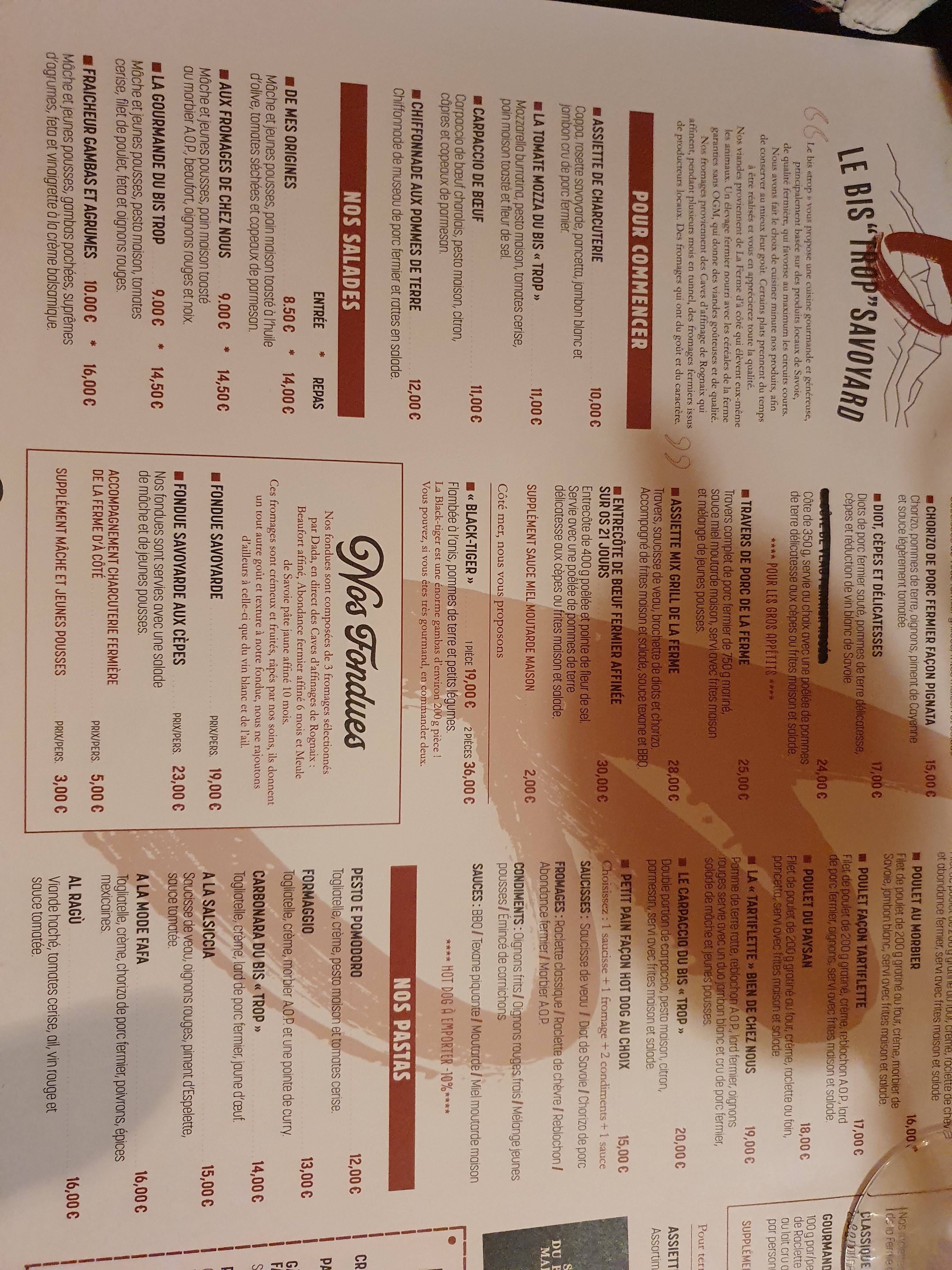 Un des meilleurs restaurants où nous avons mangé de la cuisine d’excellente qualité et Dieu c’est que l’on y vas souvent. Clients réguliers et de longue date, nous avons toujours dégusté et apprécié les différents plats de la carte proposée par l’établissement. Restaurant énormément renommé à Bride et ses environs où la clientèle est présente tous les jours d’ouverture, jamais nous n’avons attendu plus de deux minutes pour être installé à une table. Nous avons toujours été reçu par le personnel avec le sourire et la gentillesse dans un professionnalisme irréprochable, et sans parler du patron qui est très accueillant, adorable autant avec ses clients qu’avec son personnel ce tout forme une équipe d’exception ( une vrais famille où on s’y sent bien ). A tous ceux qui lisent les commentaires avant d’aller quelques par, conseil : allez au Bis’trop Savoyard et jugez par vous même, mais ne croyez pas tous ses mécontents qui se nourrissent de méchanceté dans leurs vies de tous les jours au détriment du mal qu’ils peuvent faire aux autres à la place de se nourrir d’un bon repas. À toute l’équipe du Bis’trop Savoyard continuez comme ça tout est parfait chez vous et encore merci pour votre accueil, votre gentillesse et surtout pour vos excellents plats. Cyrille, Alina et les enfants.