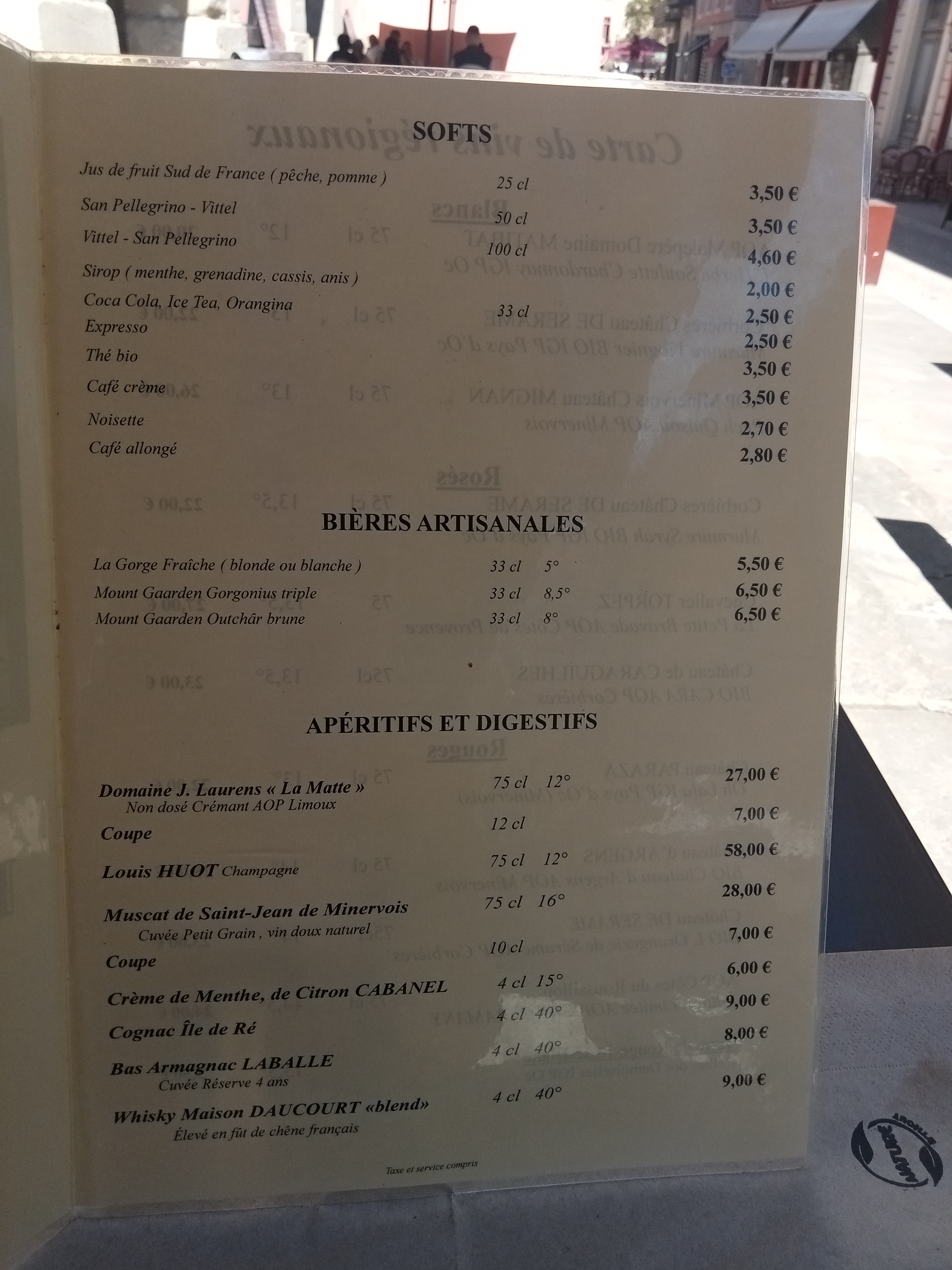 Excellent!!! Un accueil chaleureux par le boss, il explique a merveille chaque plat et dessert, tous les produits sont de la région, et chaque plat est très bon. Je recommande chaudement, un passage obligatoire à Carcassonne. De la part du couple amoureux 🙂