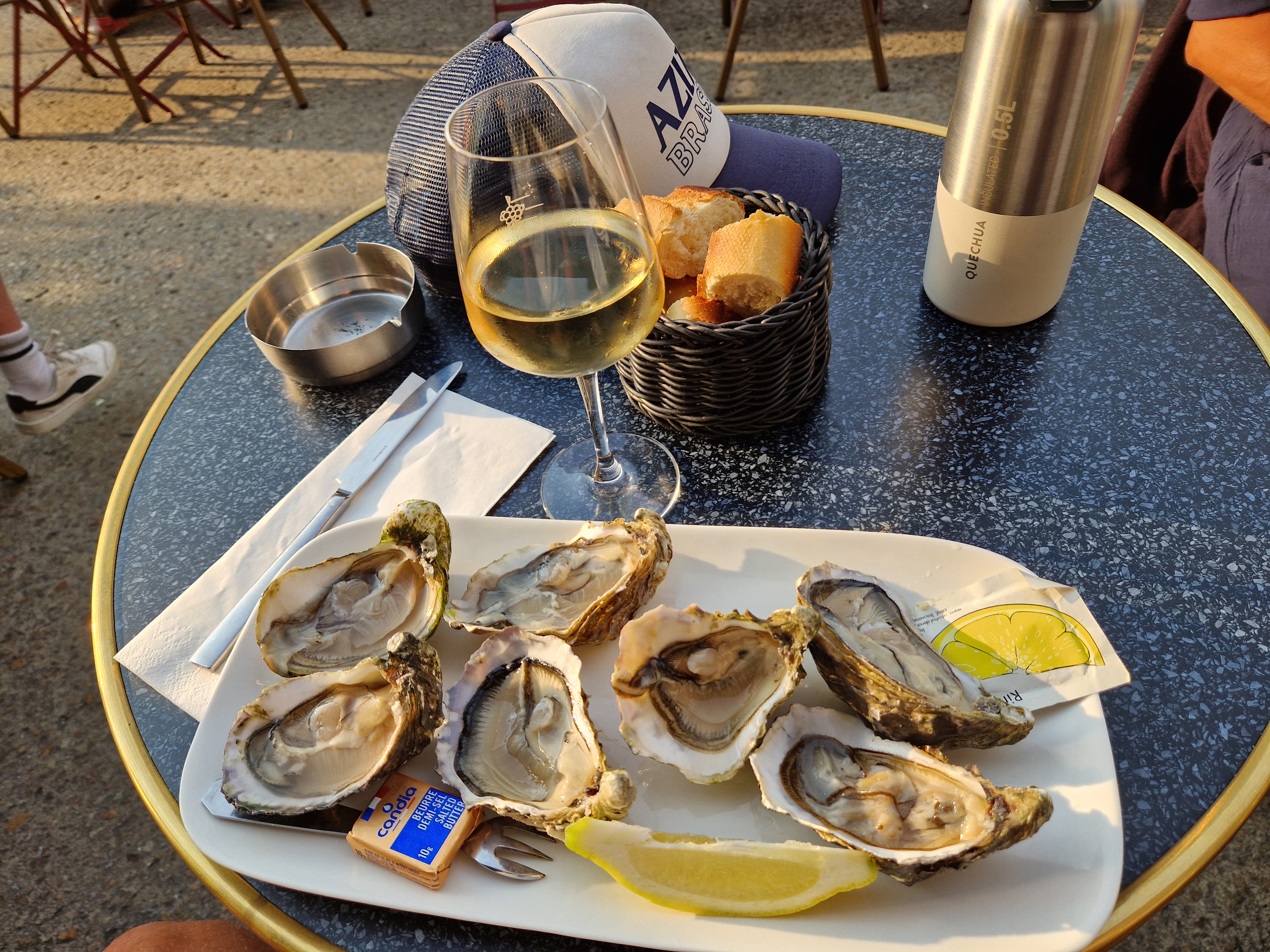 Le serveur est trop rigolo,il donne une bonne ambiance! La formule huîtres vin blanc est sympas... Maman boit le vin et le fils mange les huîtres 🤣😃😃