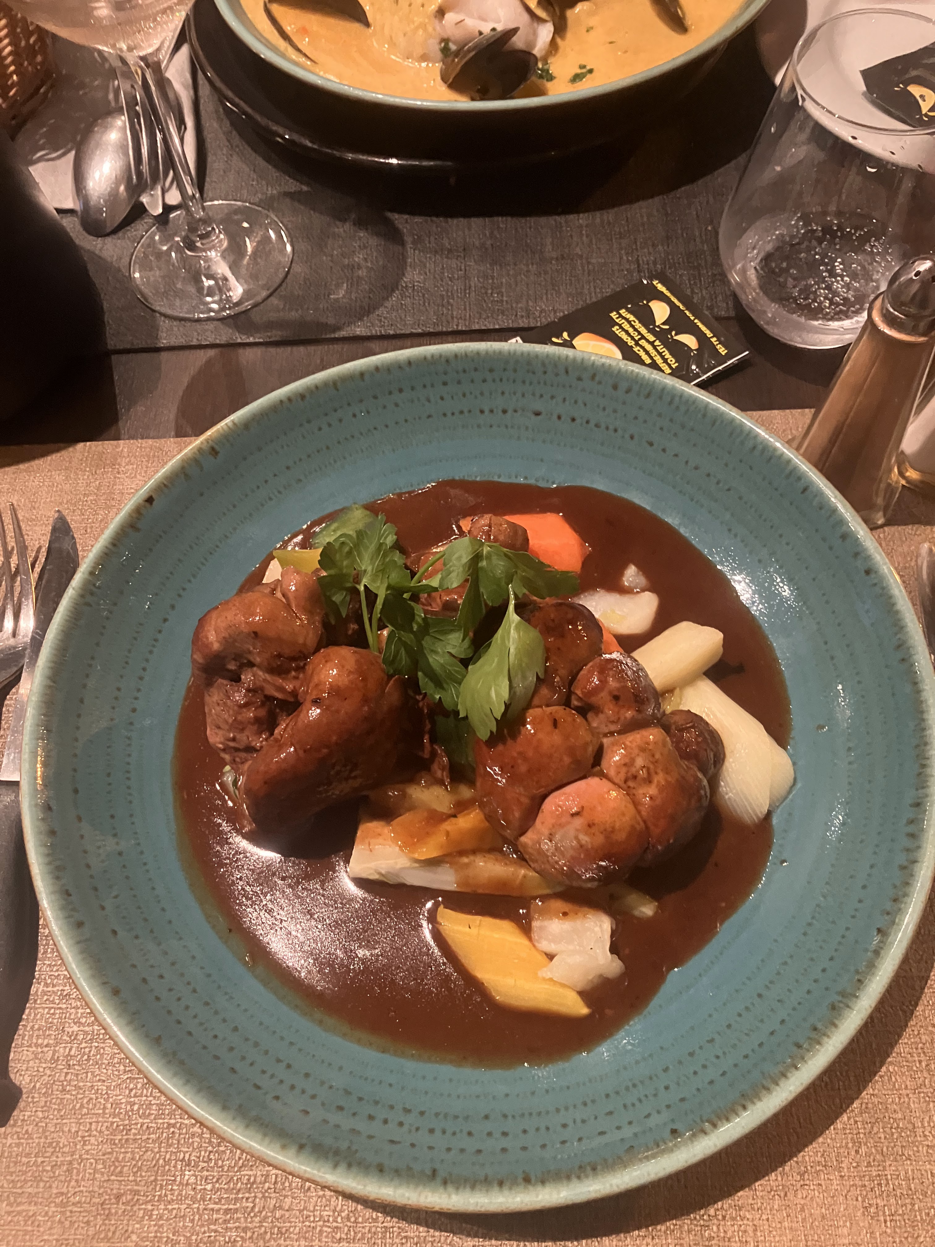 Le lieu est sympathique, le services est bon , et le kir et offert à l'apéro, les plats sont bon et savoureux , on a passé un bon moment, le tarif des entrées et des desserts , sont un peut trop élevés, je recommande le bishop