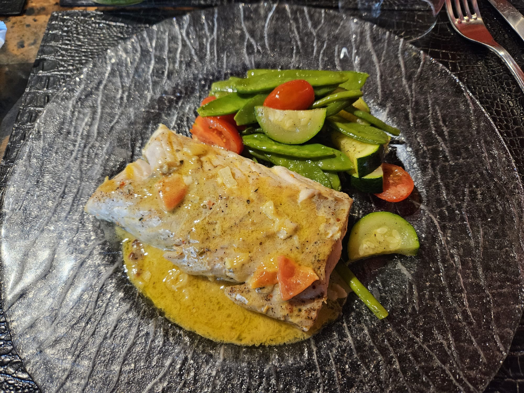 Sublime poisson avec une sauce pleine de saveur et des petits légumes croquants ! Service très sympathique