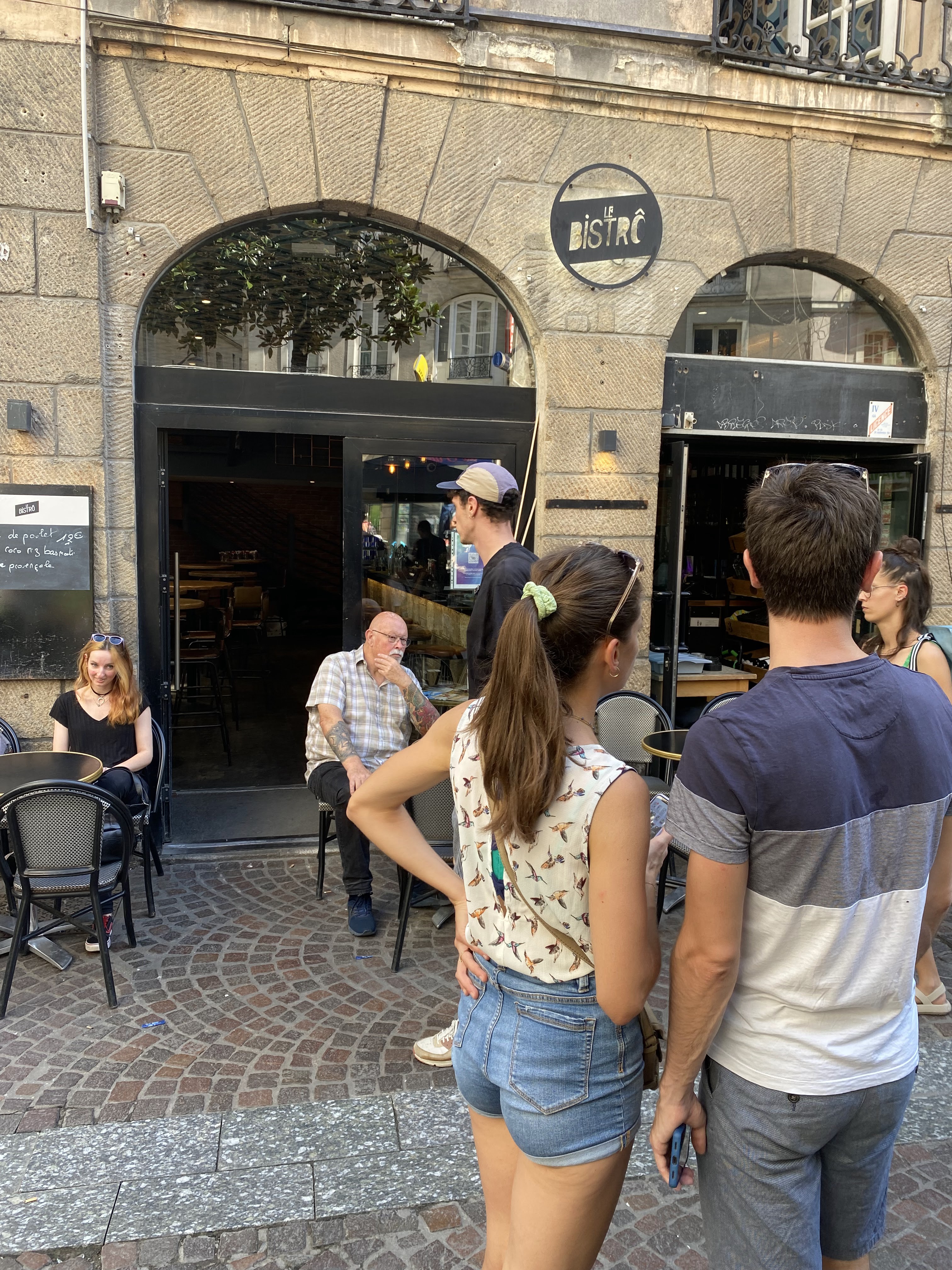 Premier jour du travail pas loin du Bistrô, il ya foule et je m'arrête pour soulager mes jambes et me désaltérer