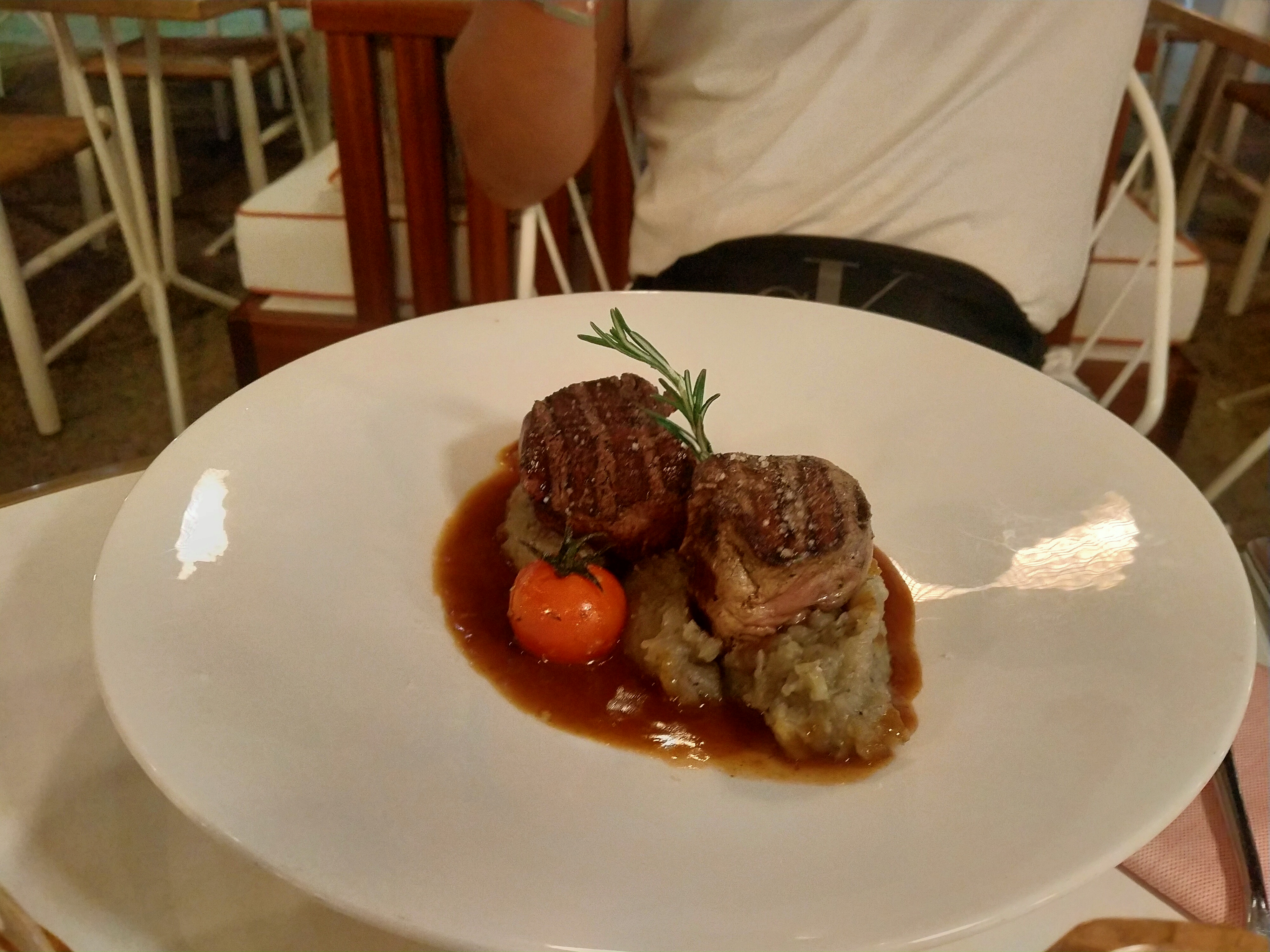 Cadre et terrasse sympa! La jeune serveuse gentille! Par contre la cuisine est un scandale, moules farcies voir photo et mon conjoint a pris une parillada ou la gambas vide sans parler des légumes qui n’avaient pas de goût!!! Bref tout est à améliorer dans cette établissement! Bon courage