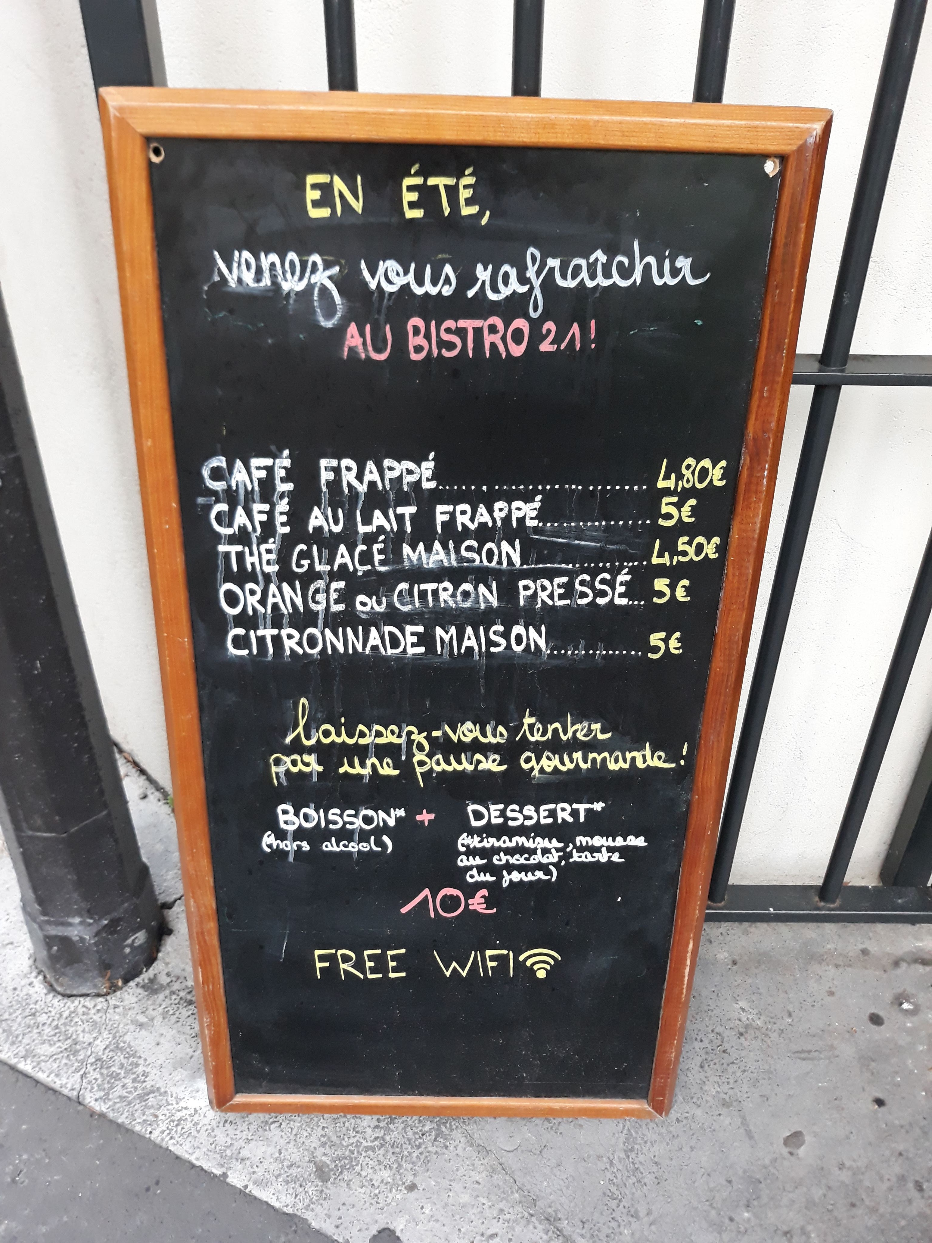 Très bon accueil en ce samedi 15 août ! Notre poisson était vraiment délicieux (cabillaud nacré, cuit à la perfection) et les petits légumes croquants à souhait et parfaitement cuisinés. le café gourmand tout à fait gourmand également ! Une excellente adresse, dans une jolie déco, à prix raisonnable et avec terrasse et véranda pour que chacun trouve son bonheur ! Merci au bistro 21 pour cette excellente soirée !
