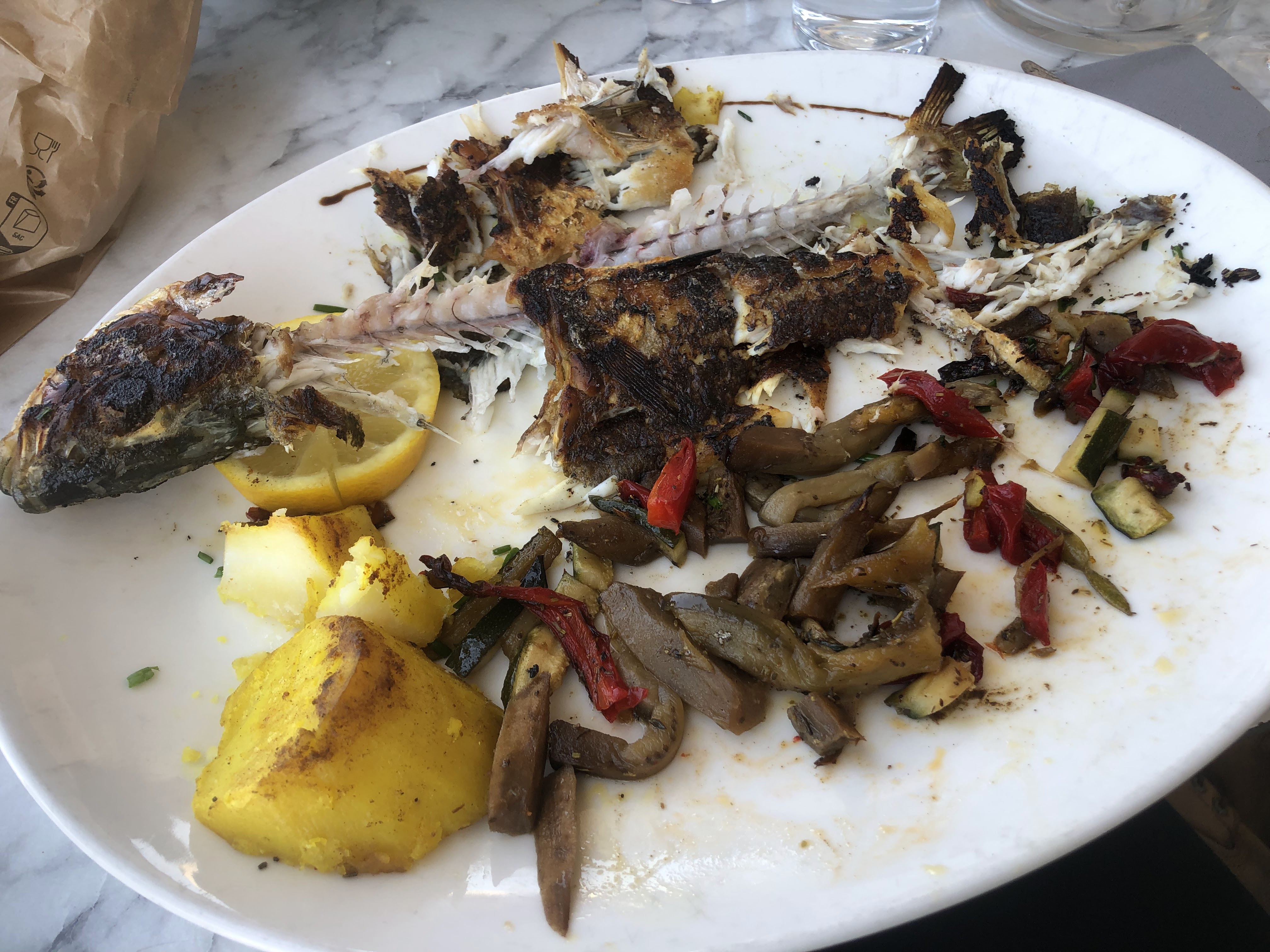 Moyen sur toute la ligne. Serveur qui essaye un peu trop de vendre ses plats, mais ne sait même pas d’où vient son poisson, ne répondant toujours pas à la question après deux relances. Mon plat était plutôt bon, mais deux de notre groupe ont eu un plat assez décevant, les aubergines n’étaient pas mangeables car pas cuites. Par ailleurs, le pain n’est pas de bonne qualité, et l’eau a un mauvais goût de frigo.