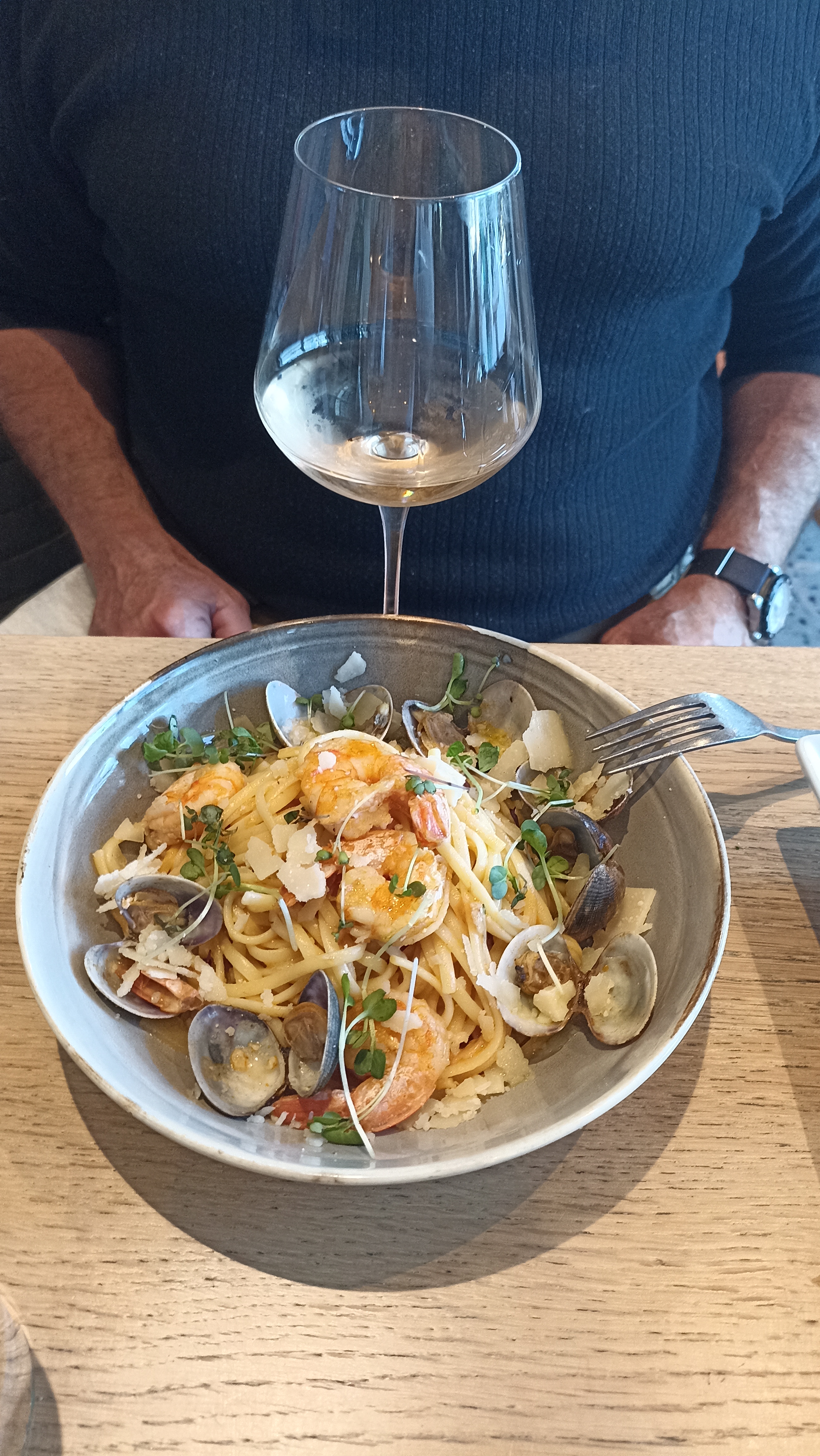 Carte de cocktails incontournable, mention spéciale pour le london mule que je commande hors carte, dans les assiettes présentation soignée, qualité des mets, quantité ....fantastique, seul bémol (mais c'est un avis personnel), sauces pas assez liées donc liquides (armoricaine pour ma lotte et sauce des liguines), desserts de dingos...BRAVO et à l'an prochain pour tjrs le même anniversaire et merci pour le placement terrasse/lac comme d'habitude...👍🏻🥳🎁