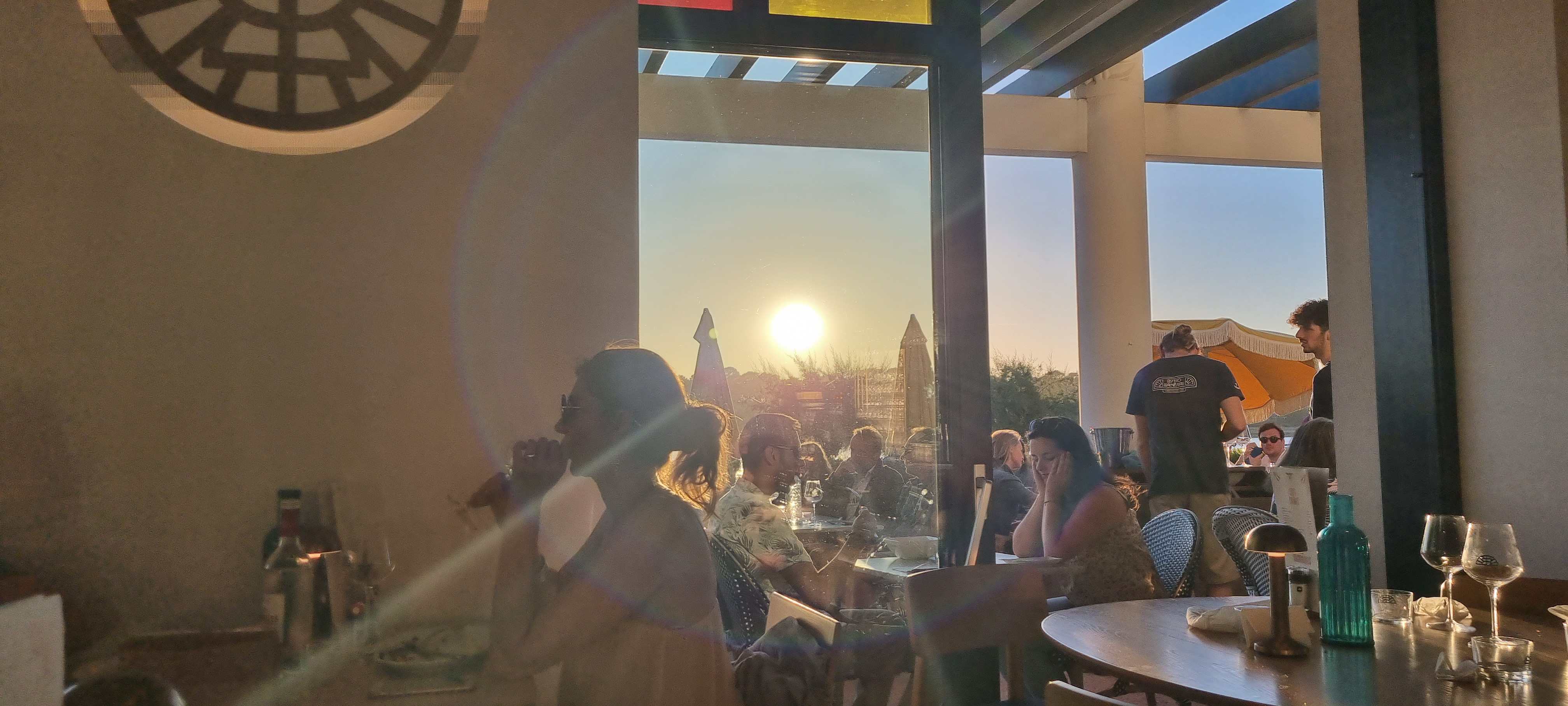 Ambiance bobo et décontracté, magnifique vue sur le lac, tout le monde bien habillé au dîner et les prix qui vont avec. Ce bistro ma tout l'air d'être the place to be côté Lac d'Hossegor: A l'occasion d'un dîner en famille, nous avions réservé à la terrasse de l'étage pour le coucher du soleil. Première surprise qui confirme l'intuition au dessus: il y a une queue pour les gens... qui ont réservé. Ok, on attend 4 min, et on nous amène en haut. Une équipe souriante nous accueille à l'étage, on apprécie et on commande: un Escondido pour commencer (cocktail mezcal café, trop bon bravo au barman!) Chipirons grillés et ceviche de maigre: parfaits, on est en appétit 😍 Et là un carré de veau arrive avec ses petites morilles 🤪 Même si on aime pas les mecs en short rose chemise bleue, et les filles (belles) qui attendent 1 min dans la queue (des gens qui ont réservé 🤣), qui font mine de recevoir un appel et qui entrent en passant devant tout le monde le tel sur l'oreille, il faut bien avouer que c'est assez dingue comme endroit, que le service est sympa (à l'étage 😉), la vue on en parle même pas, et les plats sont exquis. Et ah oui, la coupe de glace Gourmandes c'est 9€ et c'est trop trop gourmand! Allez-y, les prix sont corrects pour la régalade !