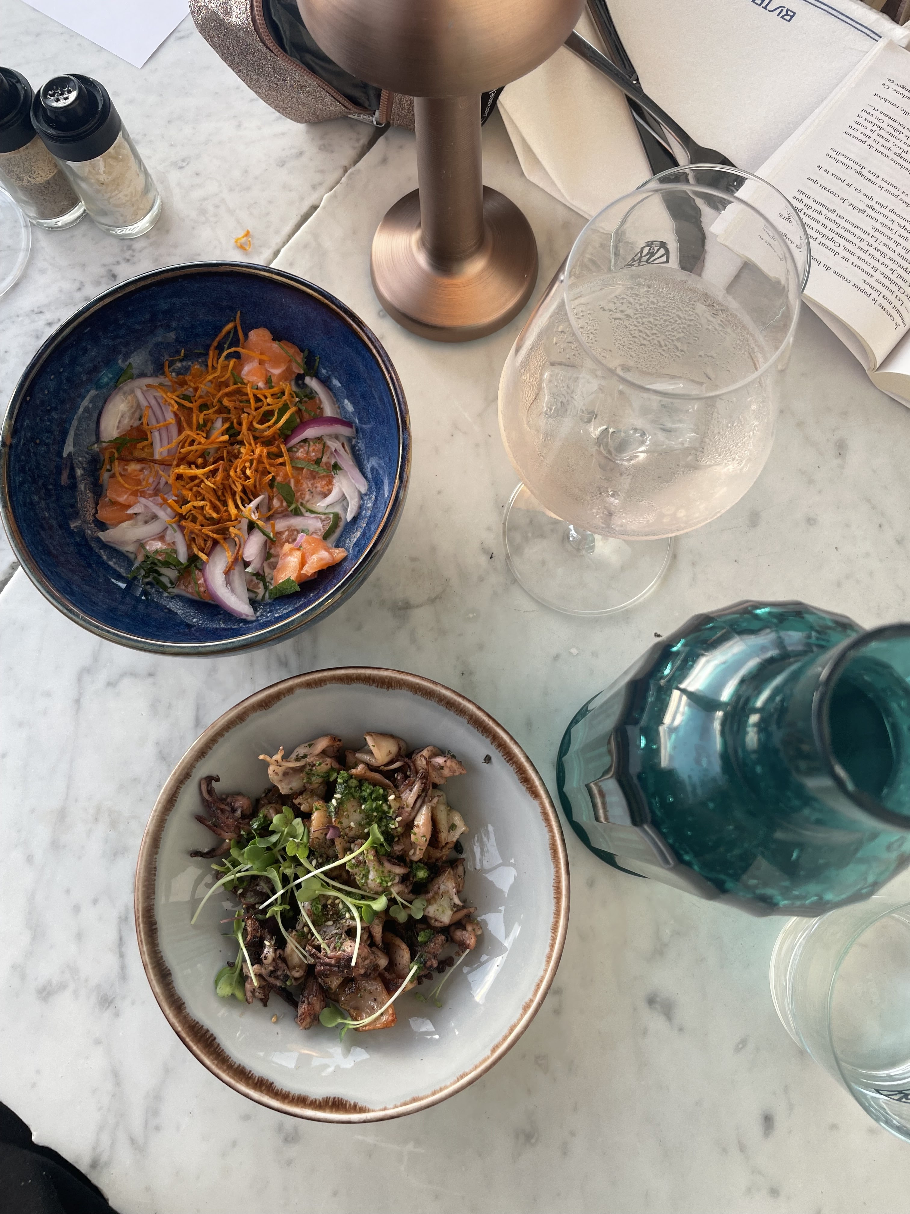 Accueil très agréable. Excellente cuisine. Nous avons pris chipirons grillés, burrata éclatée, buddha bowl, poulpe grillé et sphère chocolat passion. 30/12/2023. Bonne année à l'équipe.