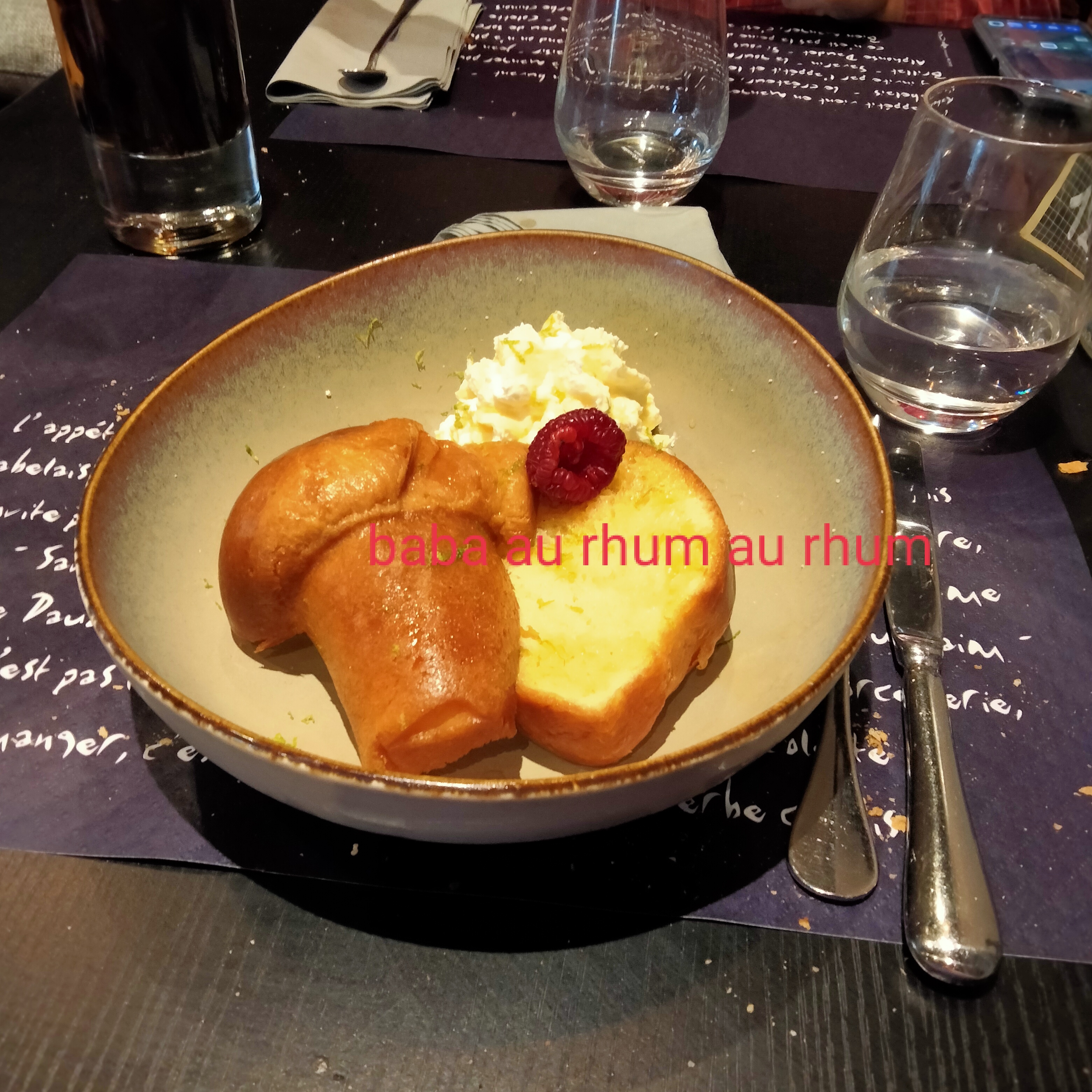 Très bon repas par contre pas un geste ou pas un verre d offert je pense que ce n est pas très commerçant surtout vu la note C est dommage