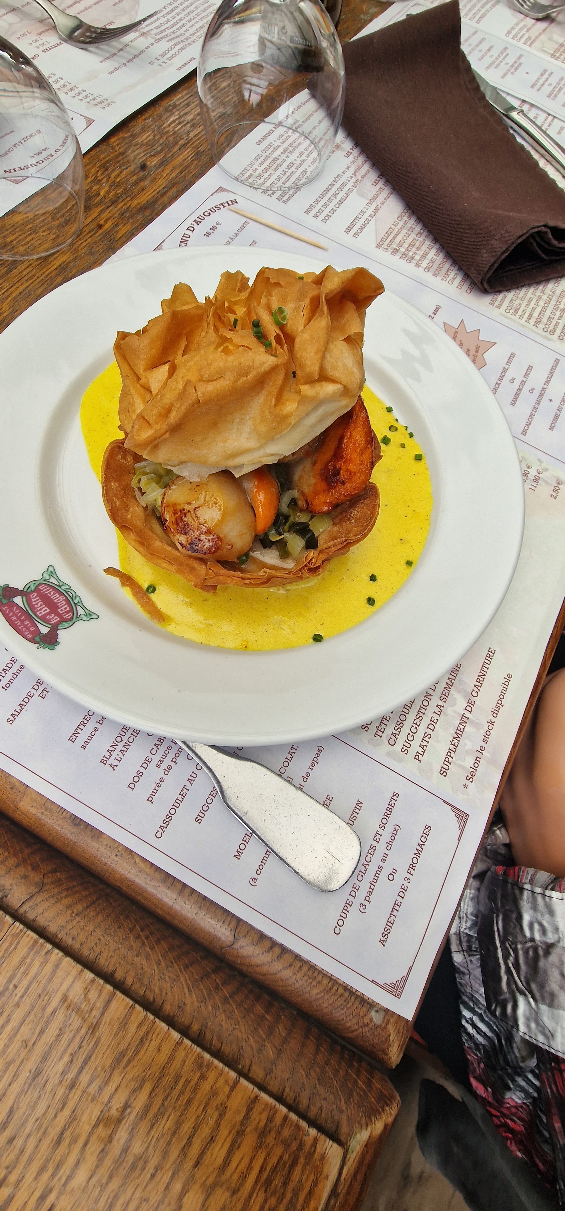 Dans un lieu très agréable j'ai dégusté une, très bonne cuisine pour un prix très compétitif. Je, recommande le bistrot d'Augustin. Le, personnel est serviable, aimable et sympathique