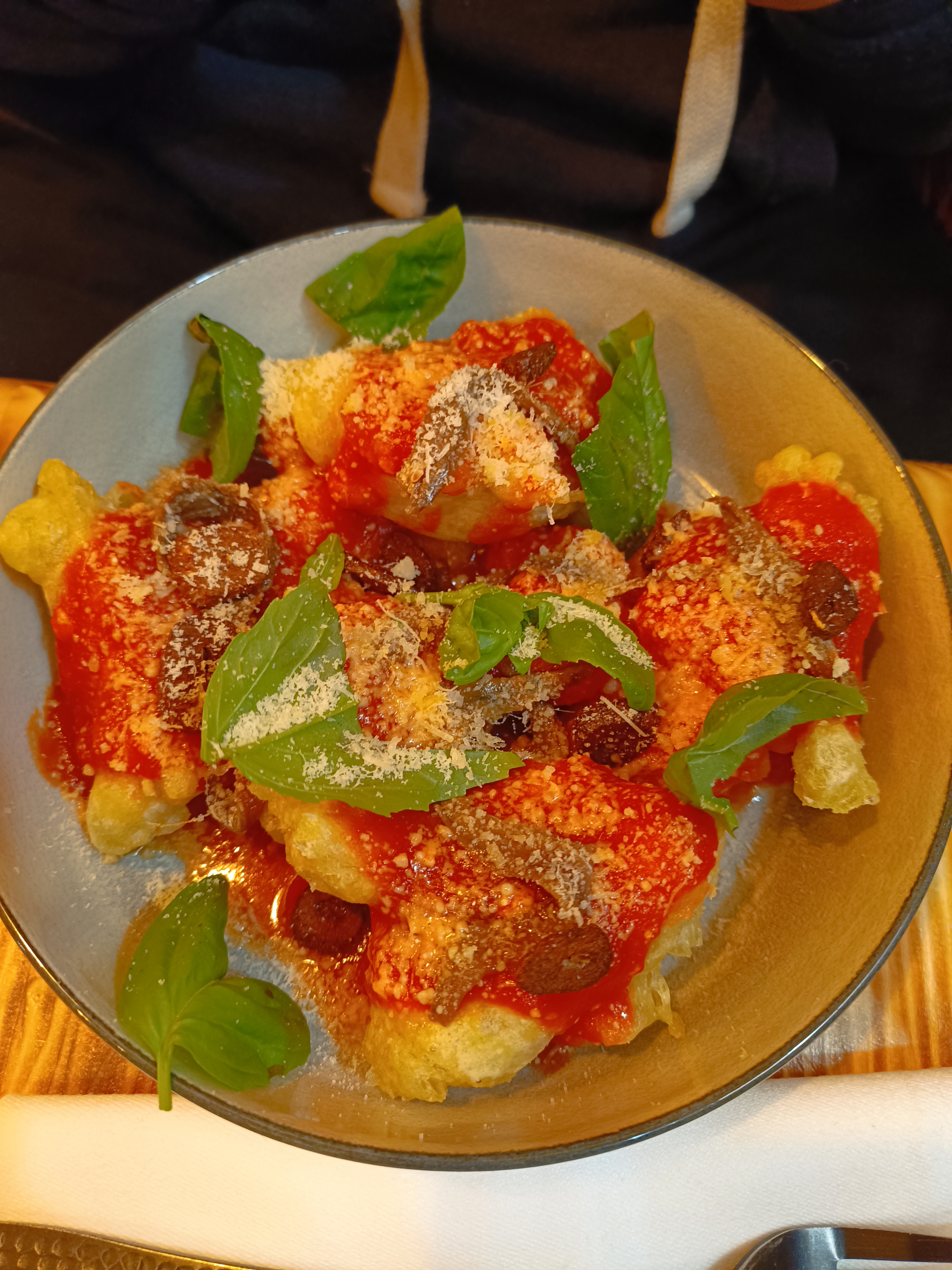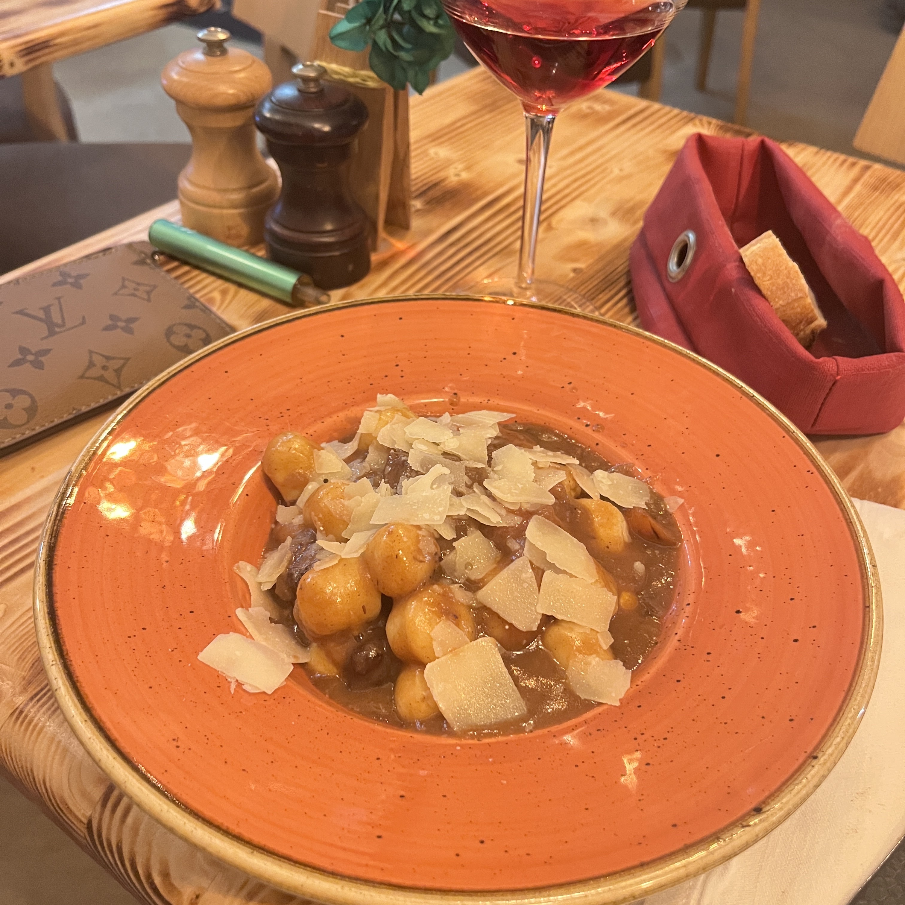Je suis venu chercher de la moelle osseuse et ce qui semble être du carpaccio de bœuf d'après des photos précédentes. Ni l’un ni l’autre n’est disponible sur le dernier menu manuscrit. J'ai choisi la nouvelle version du restaurant, composée de carpaccio de bœuf et de gnocchis, oh comme c'est décevant. L'entrée était seulement acceptable. Les gnocchis sont tellement ennuyeux avec les cubes de carottes au goût incroyablement aigre tandis que le bœuf (2 cubes) est complètement moelleux et vieux.