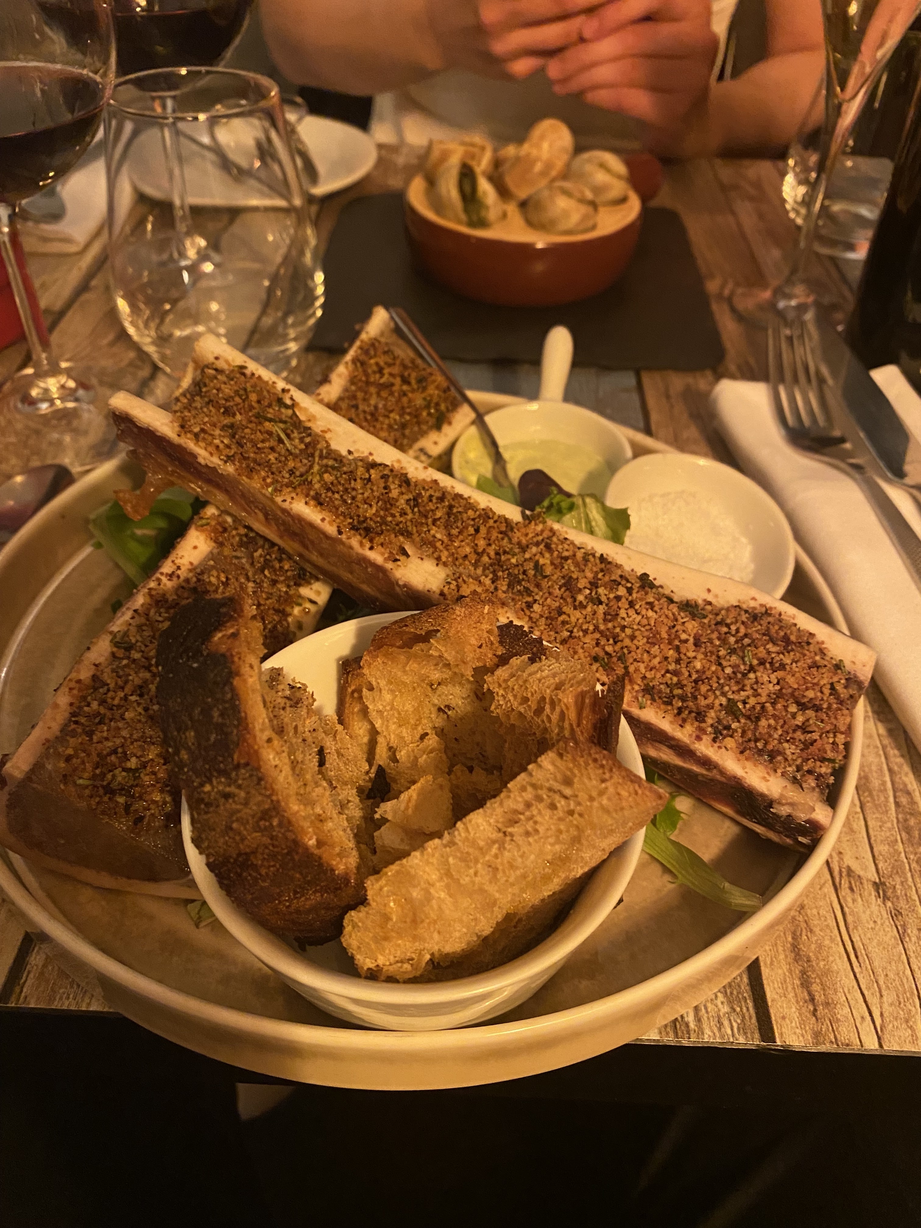 Bistrot incroyable avec de la super nourriture. Assurez-vous d'avoir la moelle osseuse et l'onglet steak. Le personnel sympathique aussi. 100eur = dîner festif pour deux personnes (entrée/plat/dessert) accompagné d'une bonne bouteille de vin.