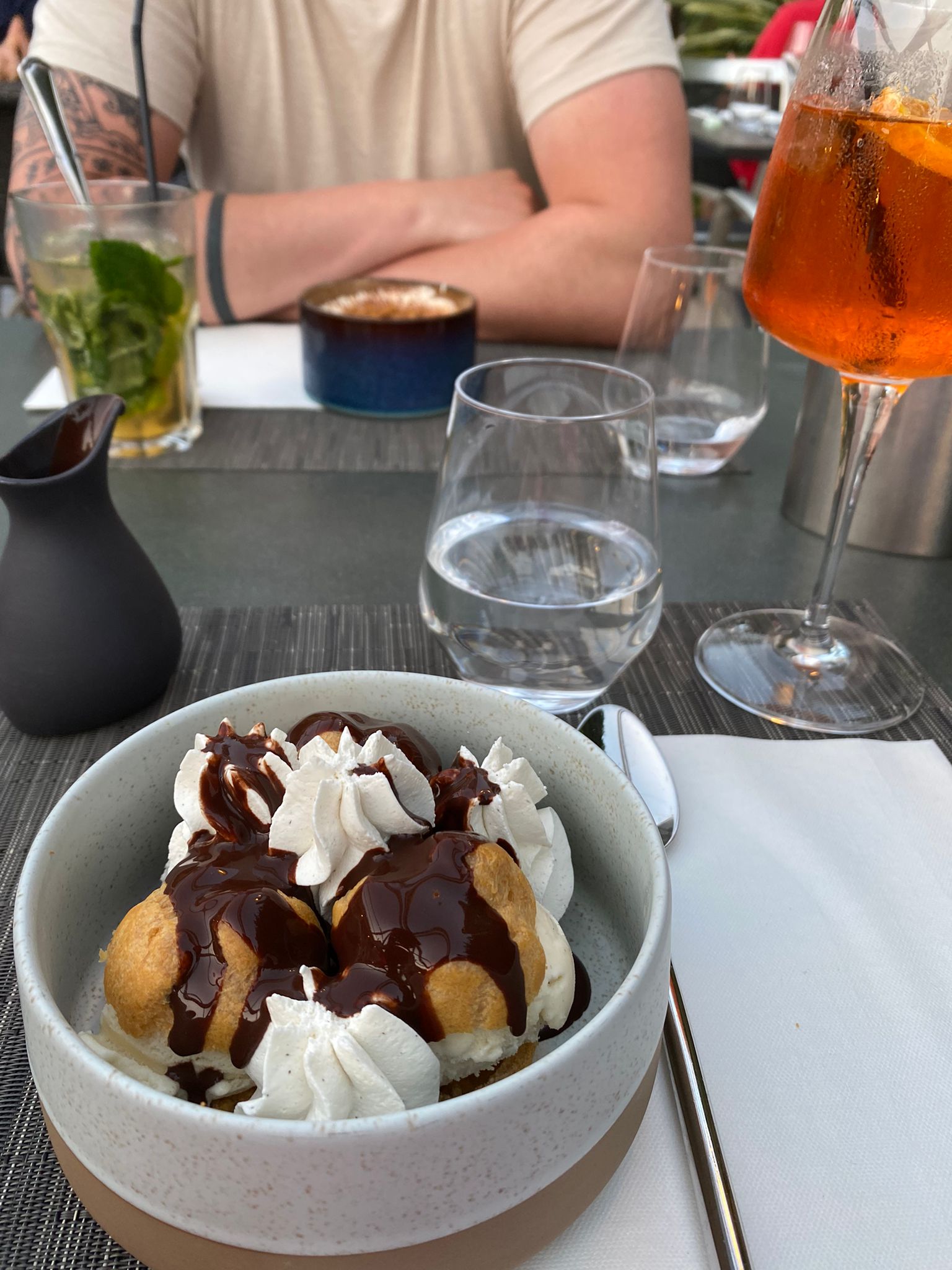 Excellente expérience! La terrasse est agréable et le service souriant et chaleureux. L’apéro Spritz avec lequel nous avons commencé était très bien équilibré. Les entrées (artichauts en salade et buffalina) étaient délicates et pleines de saveur. Le poisson en plat principal était parfaitement cuit et très savoureux également. La carte proposent des options végétariennes de qualité, comme le risotto. Différents vins blancs sont proposés au verre et le Viognier et le sauvignon étaient très bons. Le tiramisu à la belge et la piscine framboise pour le dessert étaient trop bons! Les boissons étaient fraîches. Les plats chauds servis dans des assiettes bien chaudes. Nous reviendrons!