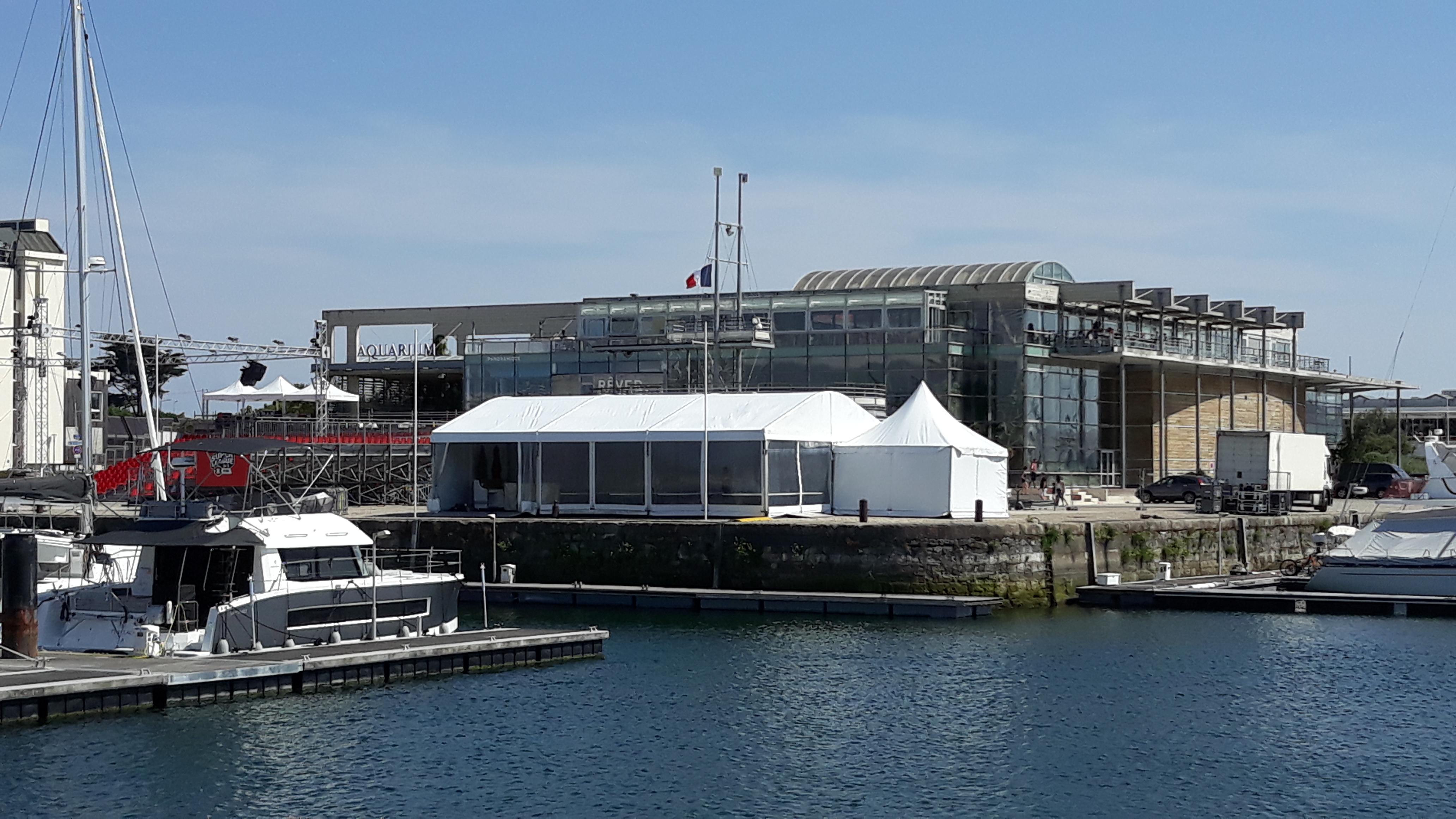 Belle vue sur le port avec aquarium et musée maritime en enfilade. Service en terrasse bien